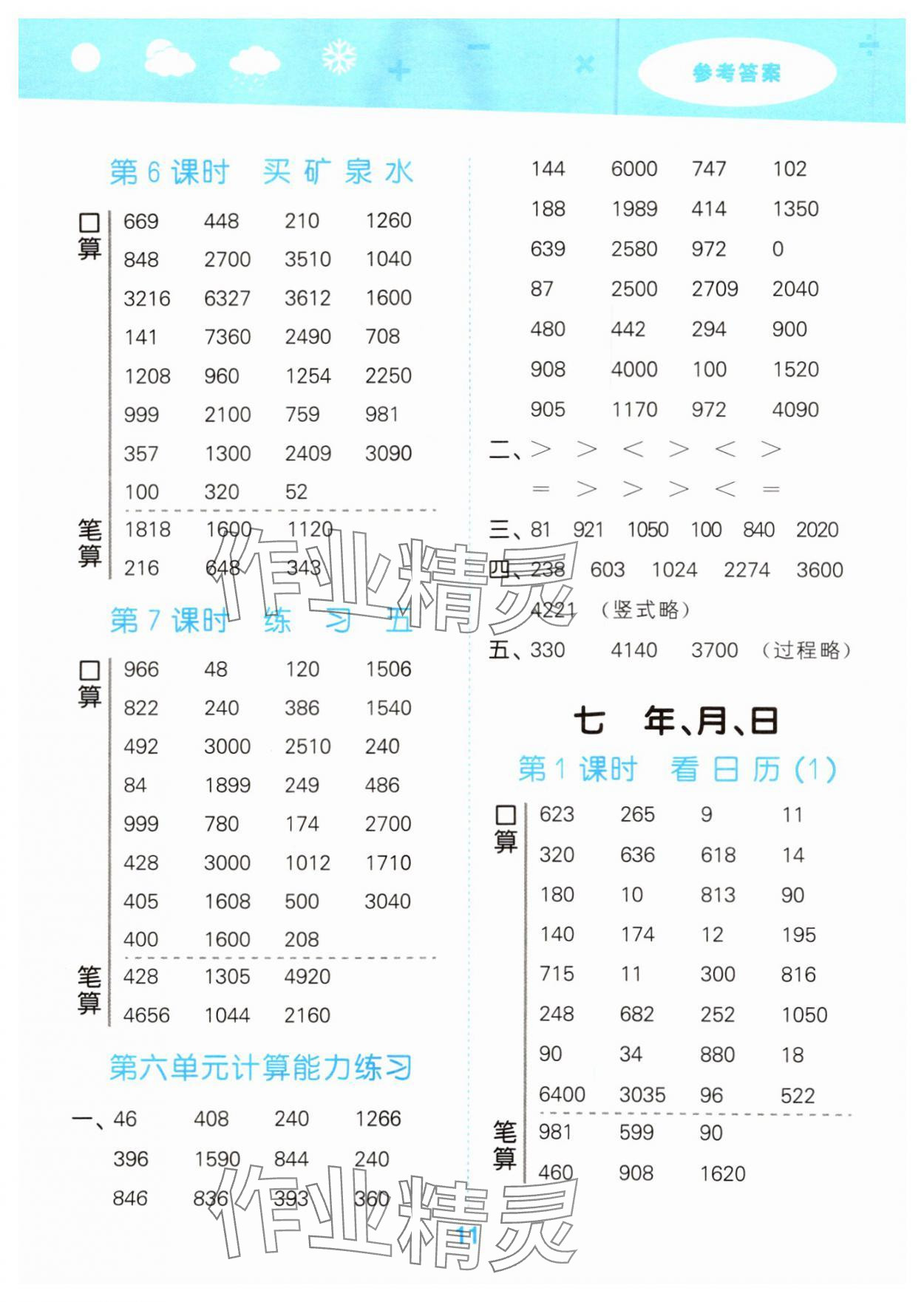 注:目前有些书本章节名称可能整理的还不是很完善,但都是按照顺序排列的,请同学们按照顺序仔细查找。练习册 2024年口算大通关三年级数学上册北师大版 答案主要是用来给同学们做完题方便对答案用的,请勿直接抄袭。