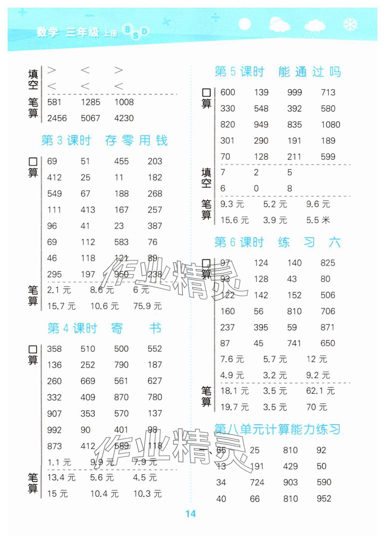 2024年口算大通关三年级数学上册北师大版