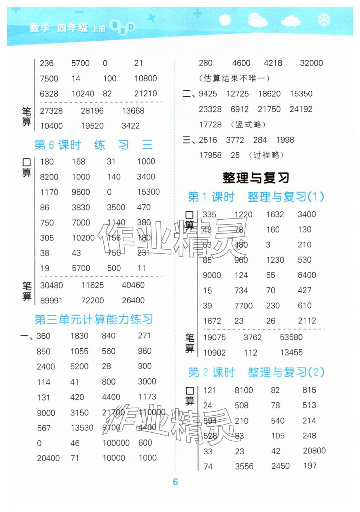 注:目前有些书本章节名称可能整理的还不是很完善,但都是按照顺序排列的,请同学们按照顺序仔细查找。练习册 2024年口算大通关四年级数学上册北师大版 答案主要是用来给同学们做完题方便对答案用的,请勿直接抄袭。