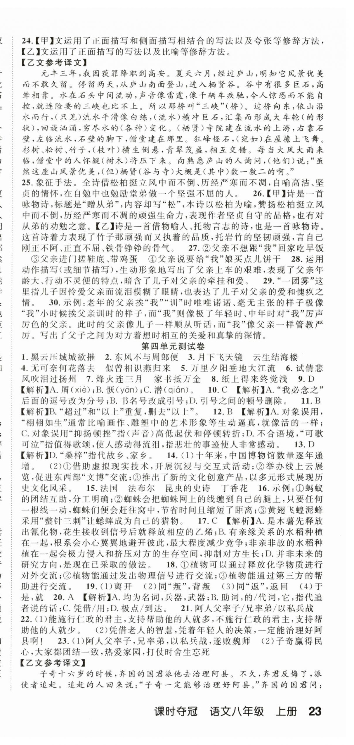 注:目前有些书本章节名称可能整理的还不是很完善,但都是按照顺序排列的,请同学们按照顺序仔细查找。练习册 2024年课时夺冠八年级语文上册人教版 答案主要是用来给同学们做完题方便对答案用的,请勿直接抄袭。