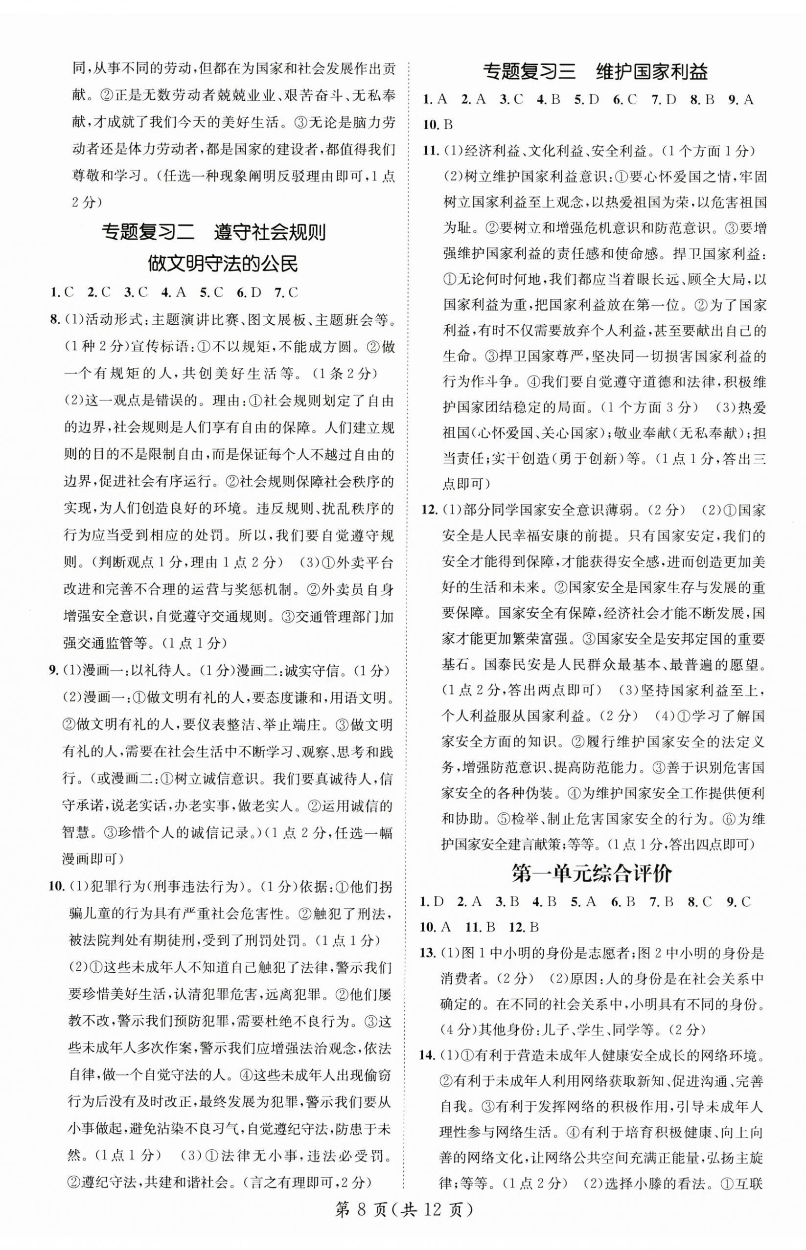 注:目前有些书本章节名称可能整理的还不是很完善,但都是按照顺序排列的,请同学们按照顺序仔细查找。练习册 2024年名师测控八年级道德与法治上册人教版安徽专版 答案主要是用来给同学们做完题方便对答案用的,请勿直接抄袭。