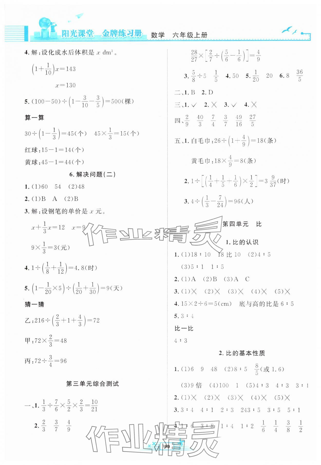 2024年阳光课堂金牌练习册六年级数学上册人教版
