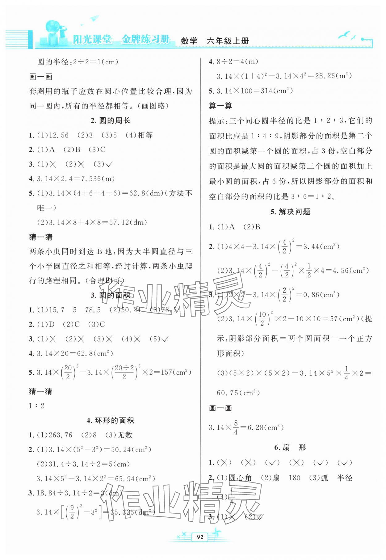 注:目前有些书本章节名称可能整理的还不是很完善,但都是按照顺序排列的,请同学们按照顺序仔细查找。练习册 2024年阳光课堂金牌练习册六年级数学上册人教版 答案主要是用来给同学们做完题方便对答案用的,请勿直接抄袭。