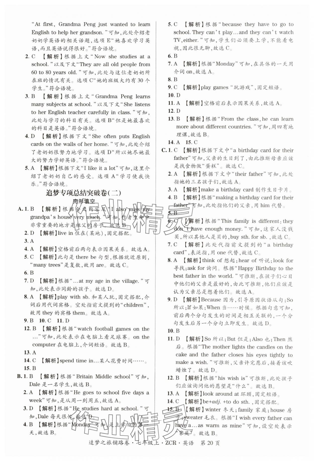 注:目前有些书本章节名称可能整理的还不是很完善,但都是按照顺序排列的,请同学们按照顺序仔细查找。练习册 2024年追梦之旅铺路卷七年级英语上册人教版河南专版 答案主要是用来给同学们做完题方便对答案用的,请勿直接抄袭。