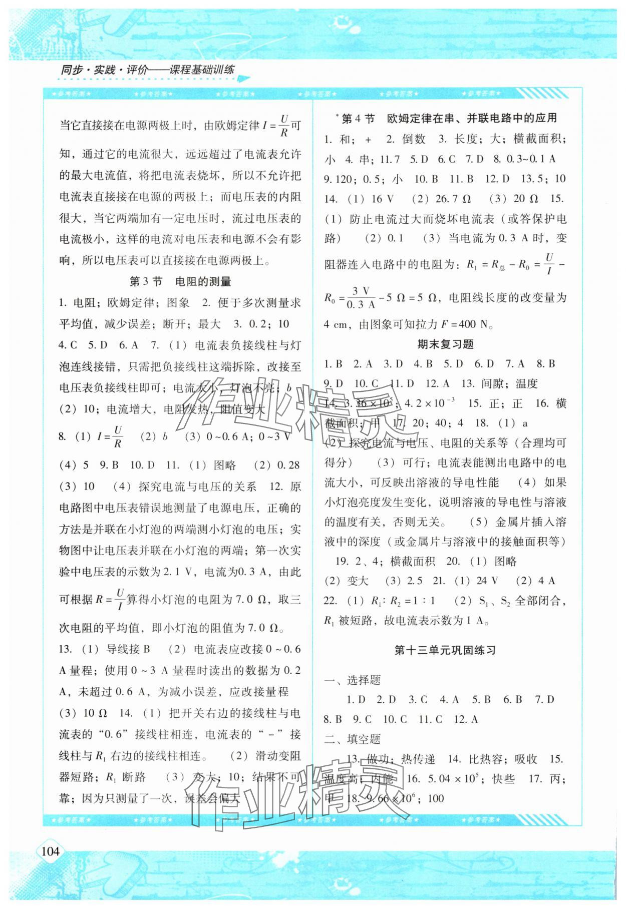 注:目前有些书本章节名称可能整理的还不是很完善,但都是按照顺序排列的,请同学们按照顺序仔细查找。练习册 2024年同步实践评价课程基础训练九年级物理上册人教版 答案主要是用来给同学们做完题方便对答案用的,请勿直接抄袭。