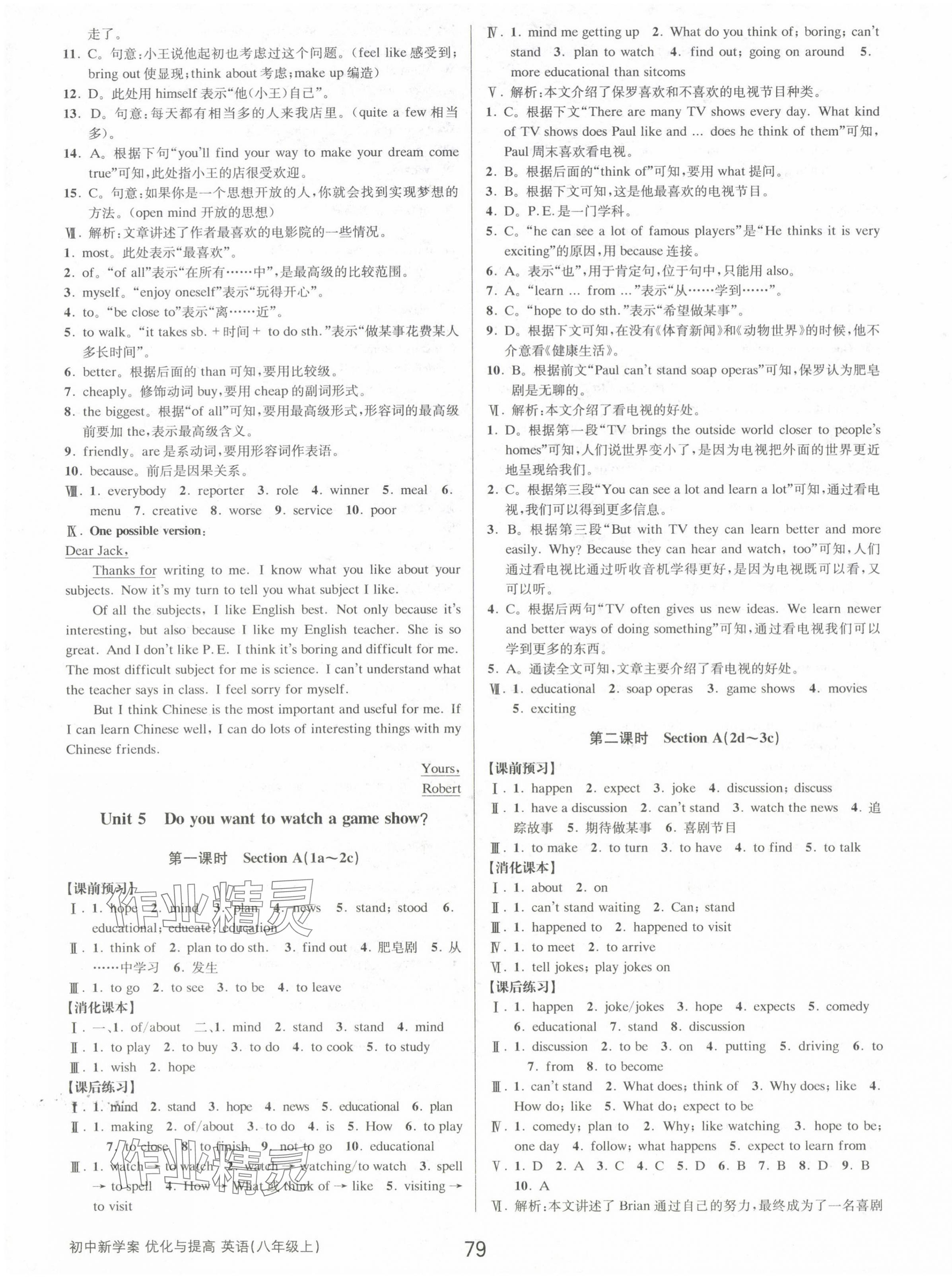 注:目前有些书本章节名称可能整理的还不是很完善,但都是按照顺序排列的,请同学们按照顺序仔细查找。练习册 2024年初中新学案优化与提高八年级英语上册人教版 答案主要是用来给同学们做完题方便对答案用的,请勿直接抄袭。