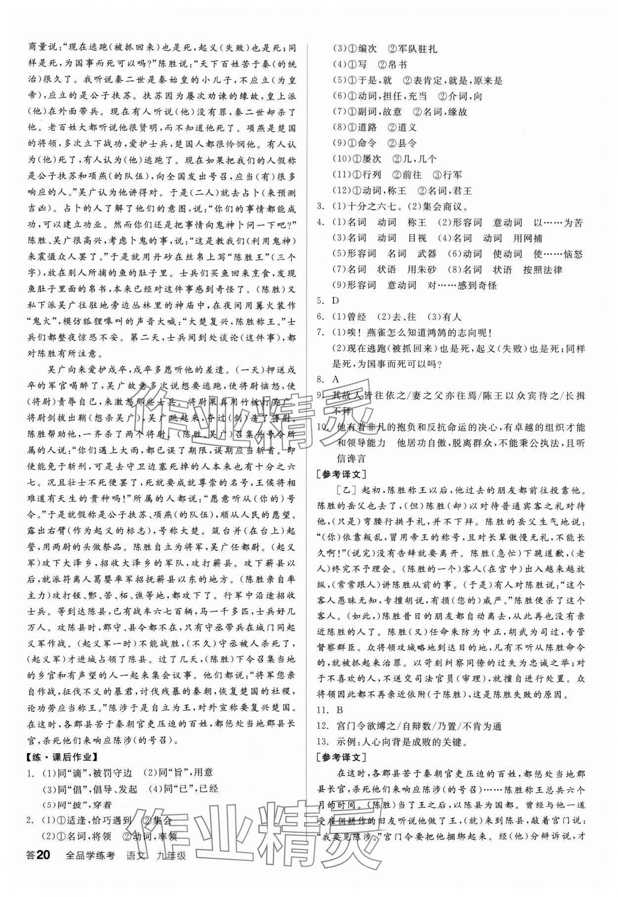 注:目前有些书本章节名称可能整理的还不是很完善,但都是按照顺序排列的,请同学们按照顺序仔细查找。练习册 2024年全品学练考九年级语文人教版广东专版 答案主要是用来给同学们做完题方便对答案用的,请勿直接抄袭。