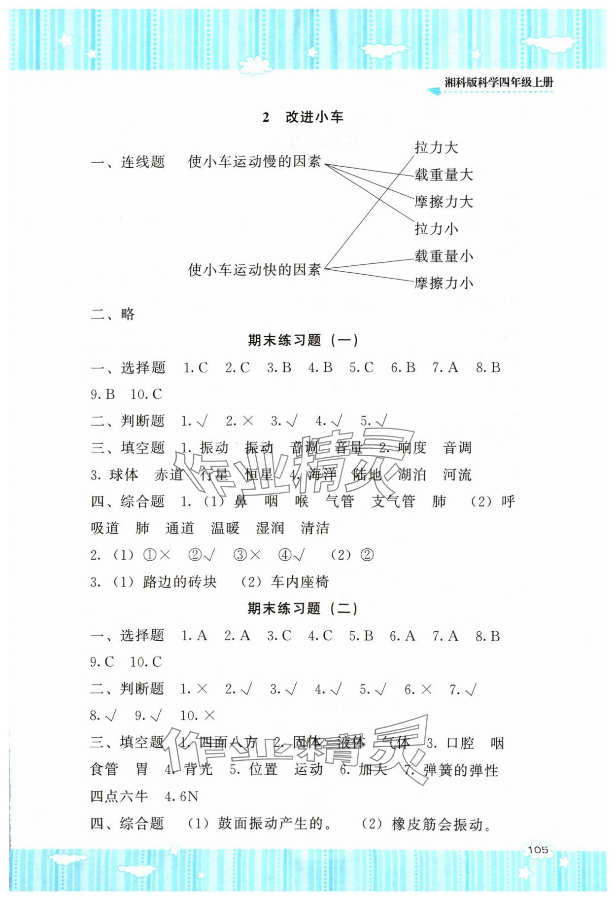 注:目前有些书本章节名称可能整理的还不是很完善,但都是按照顺序排列的,请同学们按照顺序仔细查找。练习册 2024年同步实践评价课程基础训练四年级科学上册湘科版 答案主要是用来给同学们做完题方便对答案用的,请勿直接抄袭。