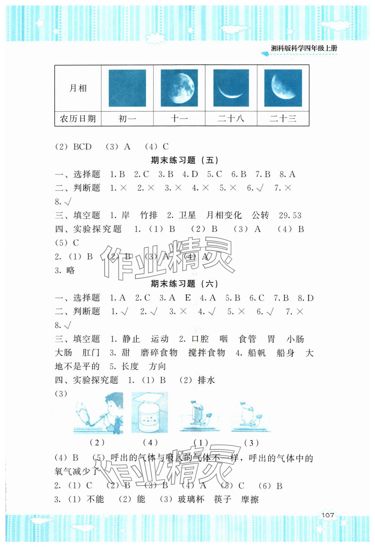 注:目前有些书本章节名称可能整理的还不是很完善,但都是按照顺序排列的,请同学们按照顺序仔细查找。练习册 2024年同步实践评价课程基础训练四年级科学上册湘科版 答案主要是用来给同学们做完题方便对答案用的,请勿直接抄袭。