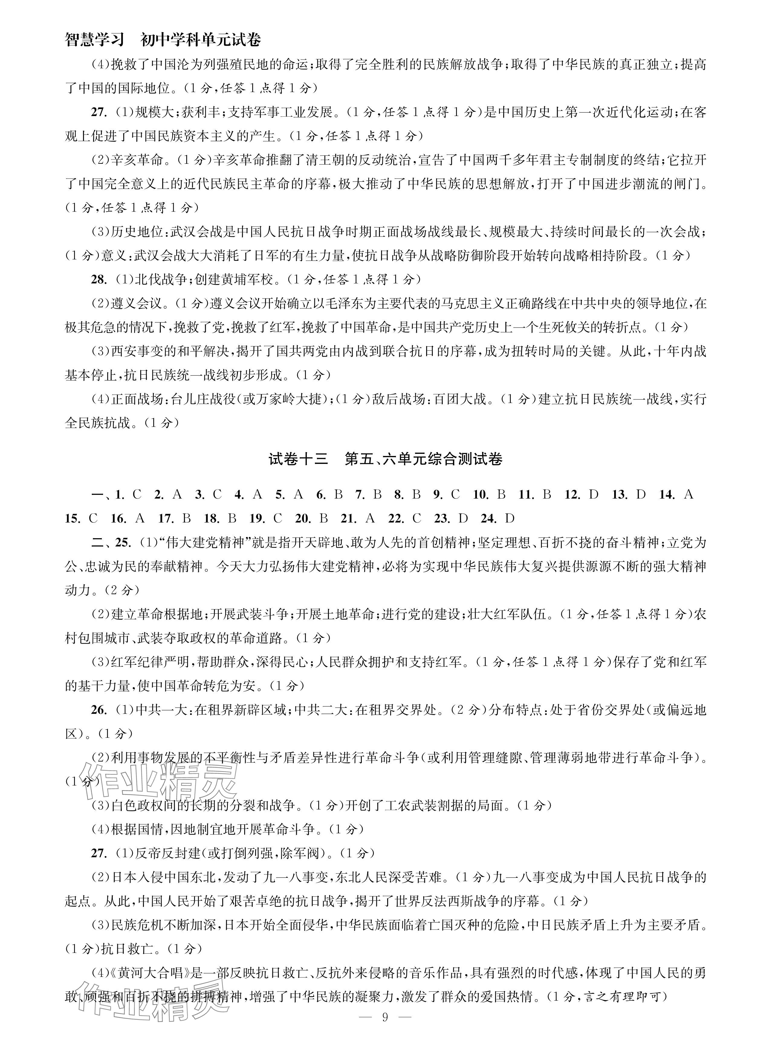 2024年智慧学习初中学科单元试卷八年级历史上册人教版