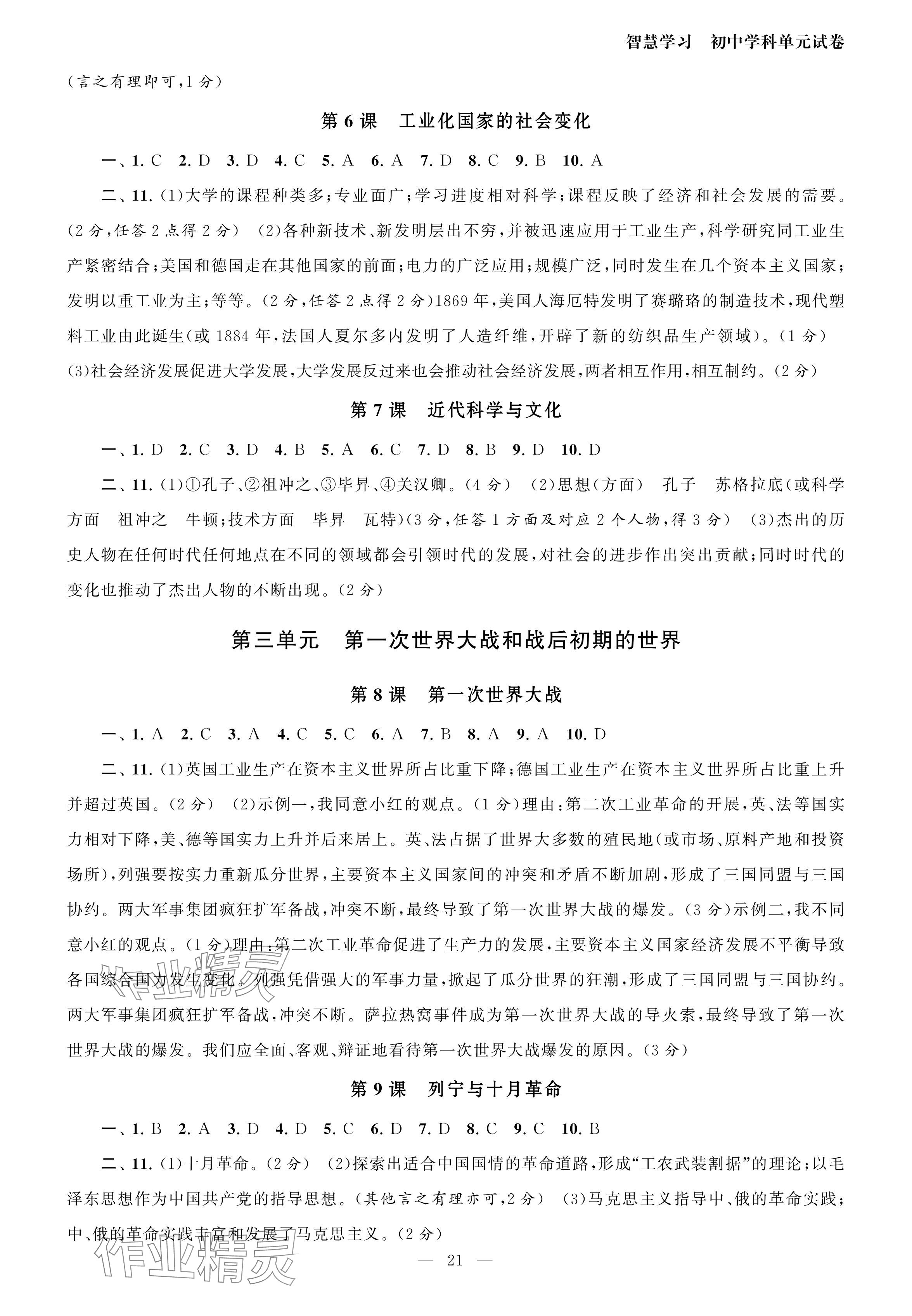 注:目前有些书本章节名称可能整理的还不是很完善,但都是按照顺序排列的,请同学们按照顺序仔细查找。练习册 2024年智慧学习初中学科单元试卷九年级历史全一册人教版 答案主要是用来给同学们做完题方便对答案用的,请勿直接抄袭。