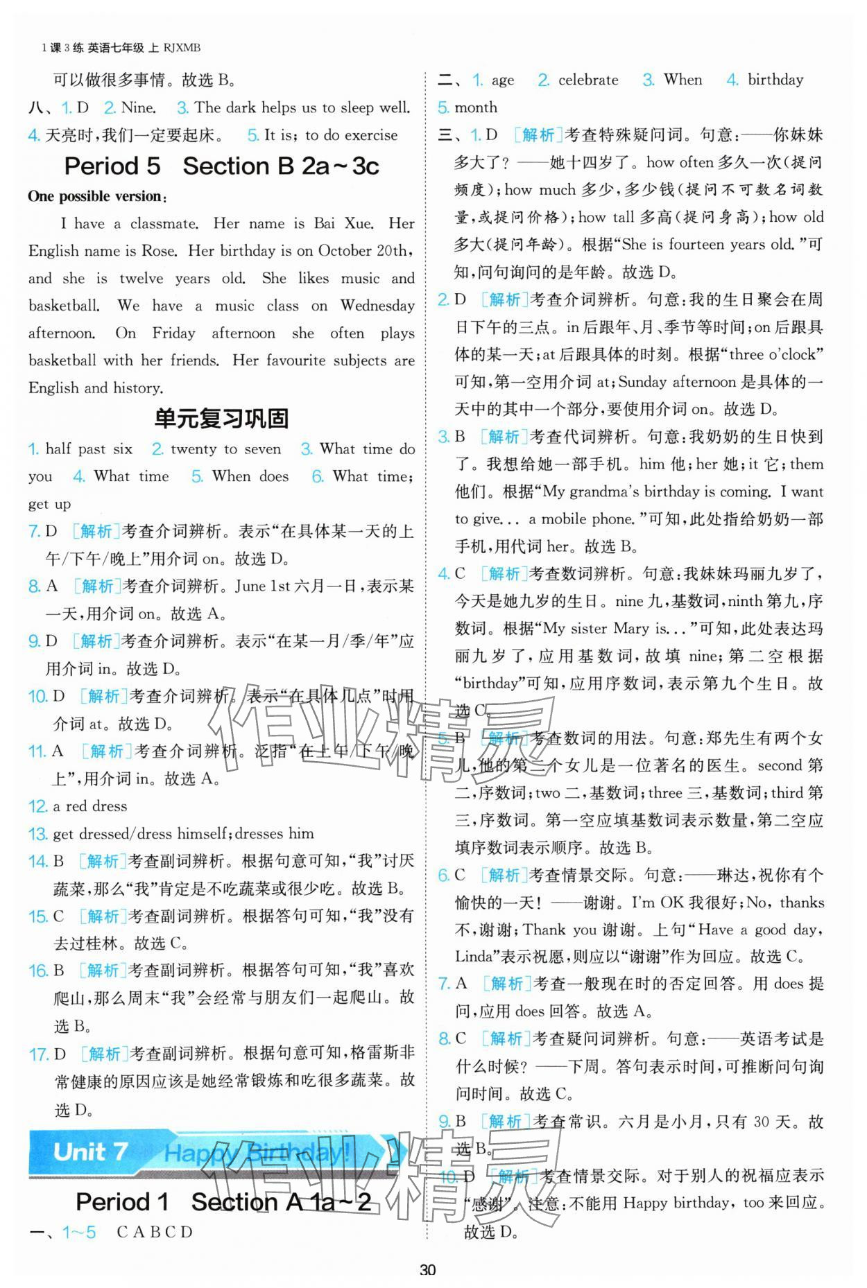 注:目前有些书本章节名称可能整理的还不是很完善,但都是按照顺序排列的,请同学们按照顺序仔细查找。练习册 2024年1课3练单元达标测试七年级英语上册人教版 答案主要是用来给同学们做完题方便对答案用的,请勿直接抄袭。