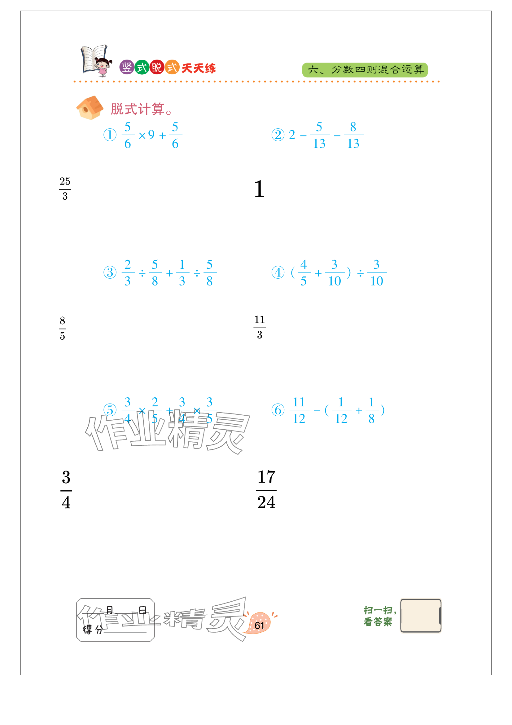 注:目前有些书本章节名称可能整理的还不是很完善,但都是按照顺序排列的,请同学们按照顺序仔细查找。练习册 2024年竖式脱式天天练六年级上册青岛版 答案主要是用来给同学们做完题方便对答案用的,请勿直接抄袭。