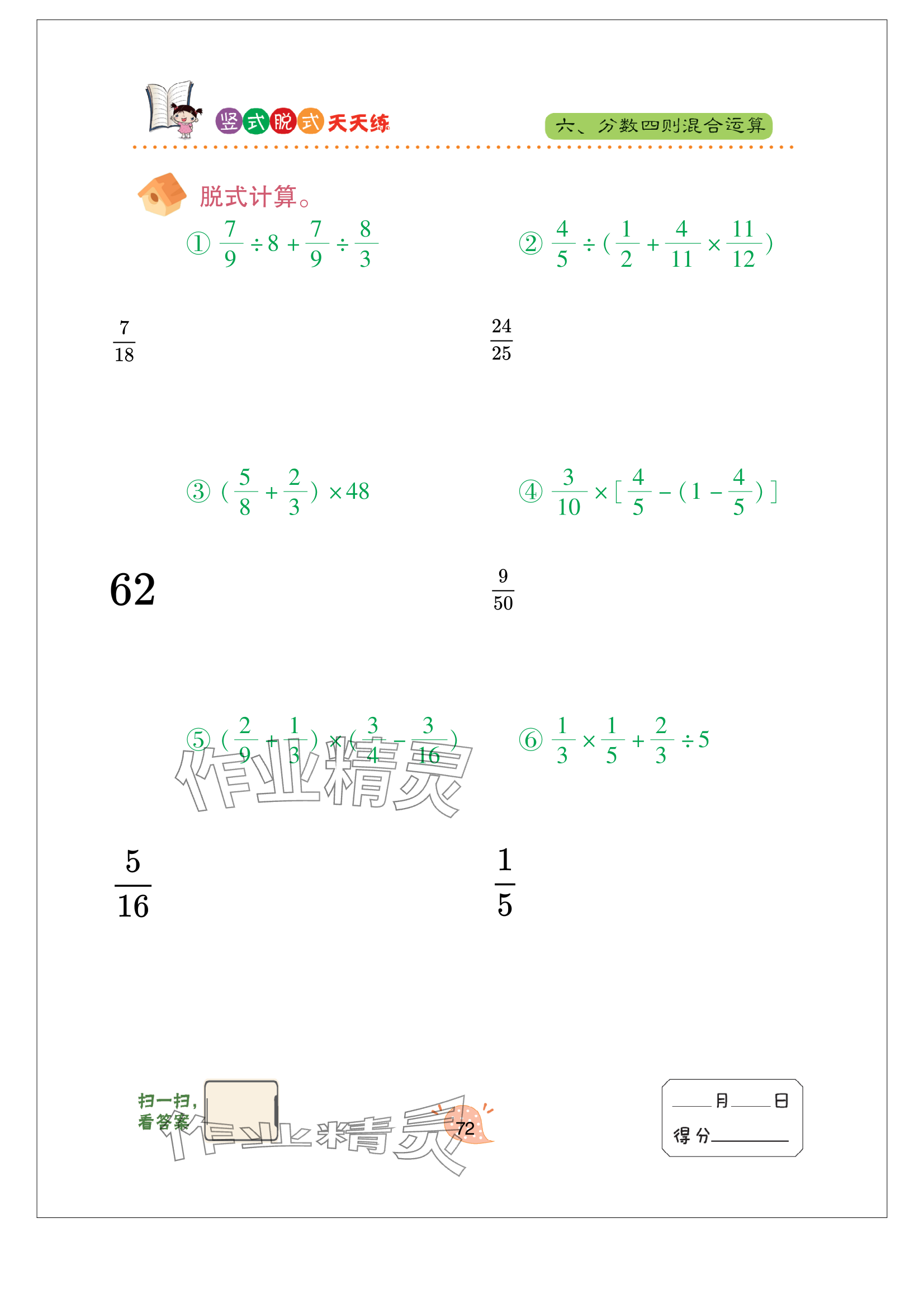 注:目前有些书本章节名称可能整理的还不是很完善,但都是按照顺序排列的,请同学们按照顺序仔细查找。练习册 2024年竖式脱式天天练六年级上册青岛版 答案主要是用来给同学们做完题方便对答案用的,请勿直接抄袭。