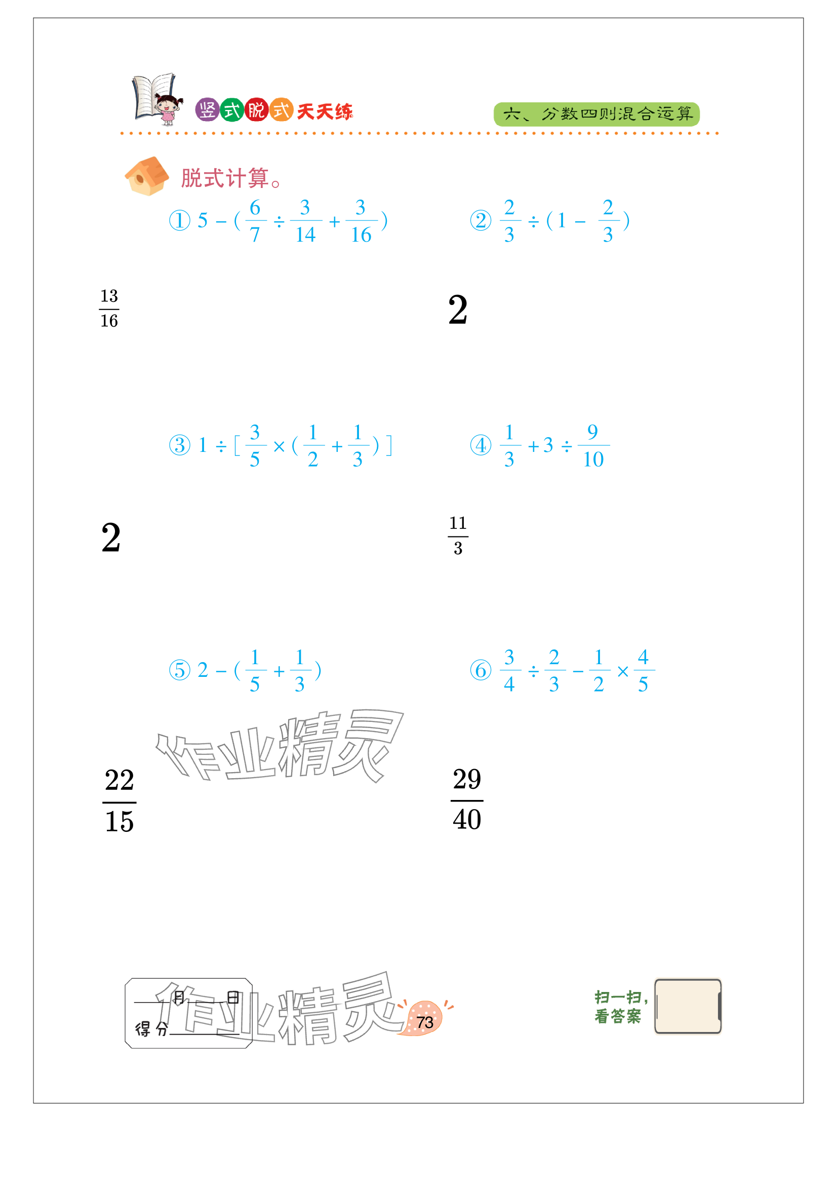 注:目前有些书本章节名称可能整理的还不是很完善,但都是按照顺序排列的,请同学们按照顺序仔细查找。练习册 2024年竖式脱式天天练六年级上册青岛版 答案主要是用来给同学们做完题方便对答案用的,请勿直接抄袭。