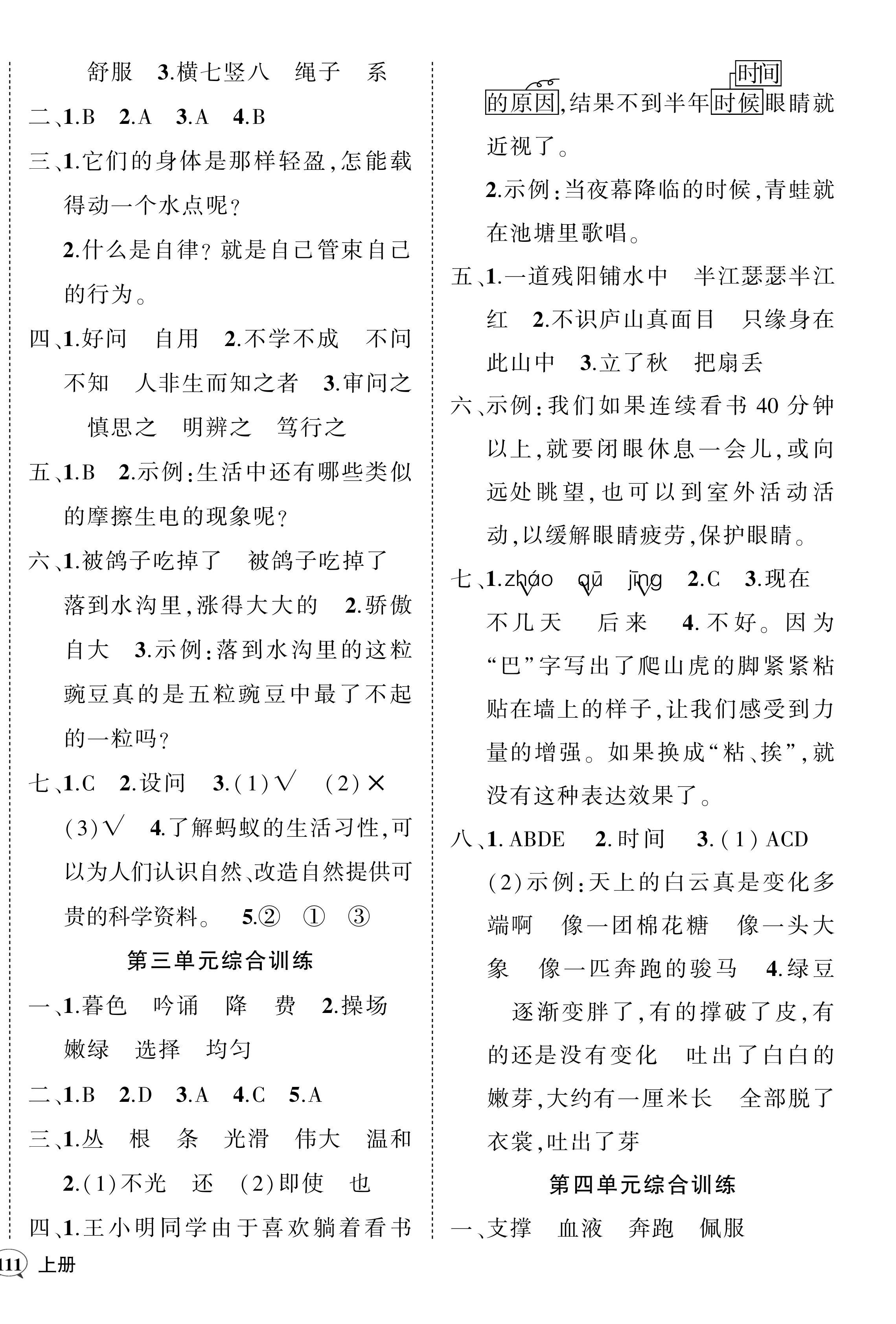 注:目前有些书本章节名称可能整理的还不是很完善,但都是按照顺序排列的,请同学们按照顺序仔细查找。练习册 2024年状元成才路创优作业100分四年级语文上册人教版 答案主要是用来给同学们做完题方便对答案用的,请勿直接抄袭。