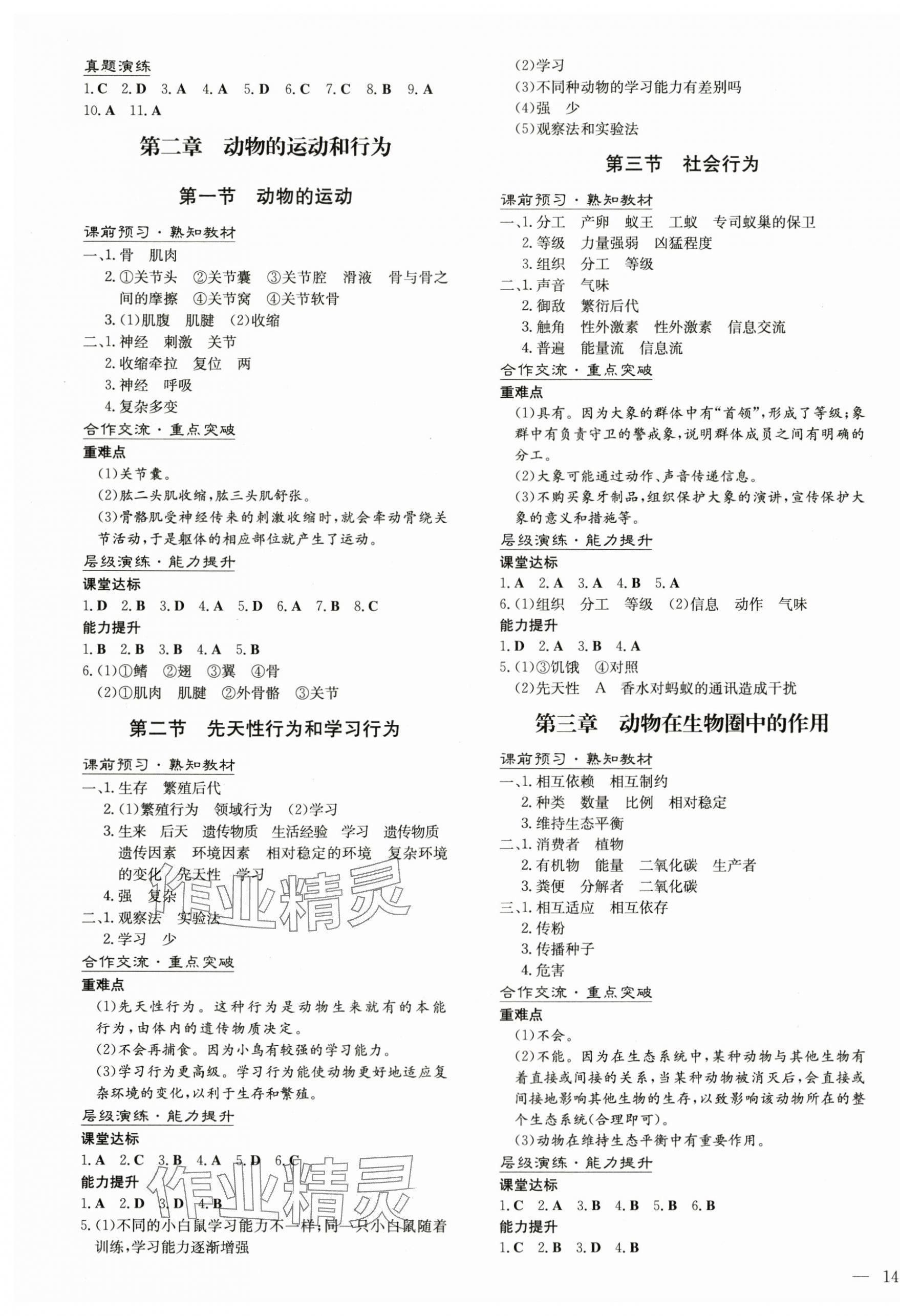 注:目前有些书本章节名称可能整理的还不是很完善,但都是按照顺序排列的,请同学们按照顺序仔细查找。练习册 2024年初中同步学习导与练导学探究案八年级生物上册人教版 答案主要是用来给同学们做完题方便对答案用的,请勿直接抄袭。