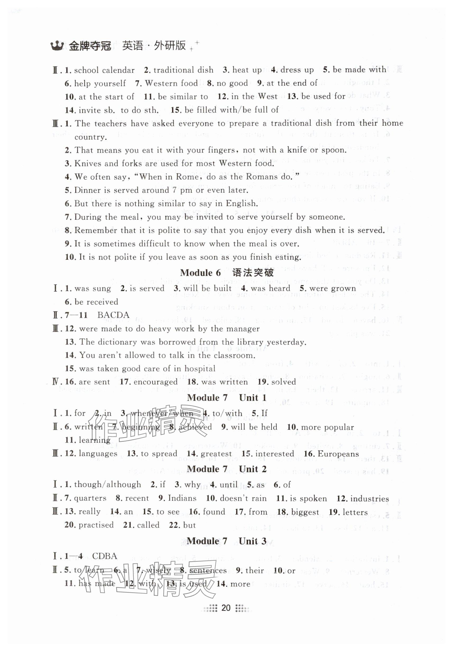 注:目前有些书本章节名称可能整理的还不是很完善,但都是按照顺序排列的,请同学们按照顺序仔细查找。练习册 2024年点石成金金牌夺冠九年级英语全一册外研版辽宁专版 答案主要是用来给同学们做完题方便对答案用的,请勿直接抄袭。