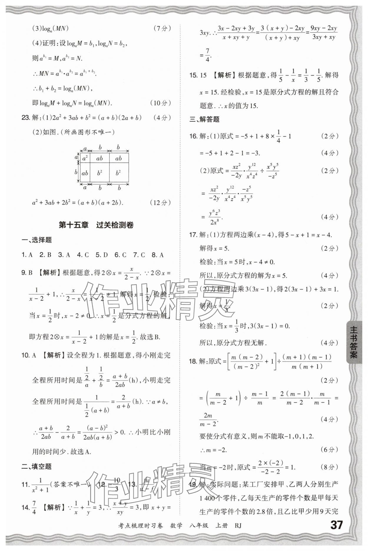 2024年王朝霞考点梳理时习卷八年级数学上册人教版