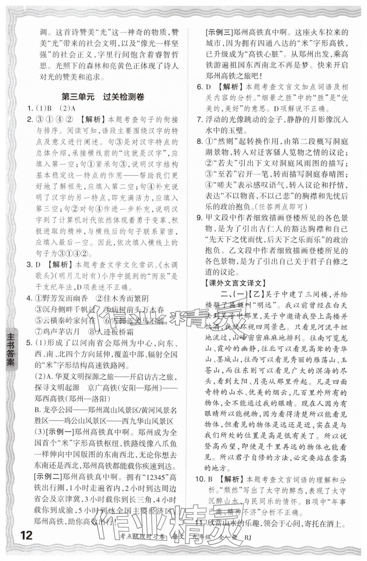 注:目前有些书本章节名称可能整理的还不是很完善,但都是按照顺序排列的,请同学们按照顺序仔细查找。练习册 2024年王朝霞考点梳理时习卷九年级语文全一册人教版 答案主要是用来给同学们做完题方便对答案用的,请勿直接抄袭。