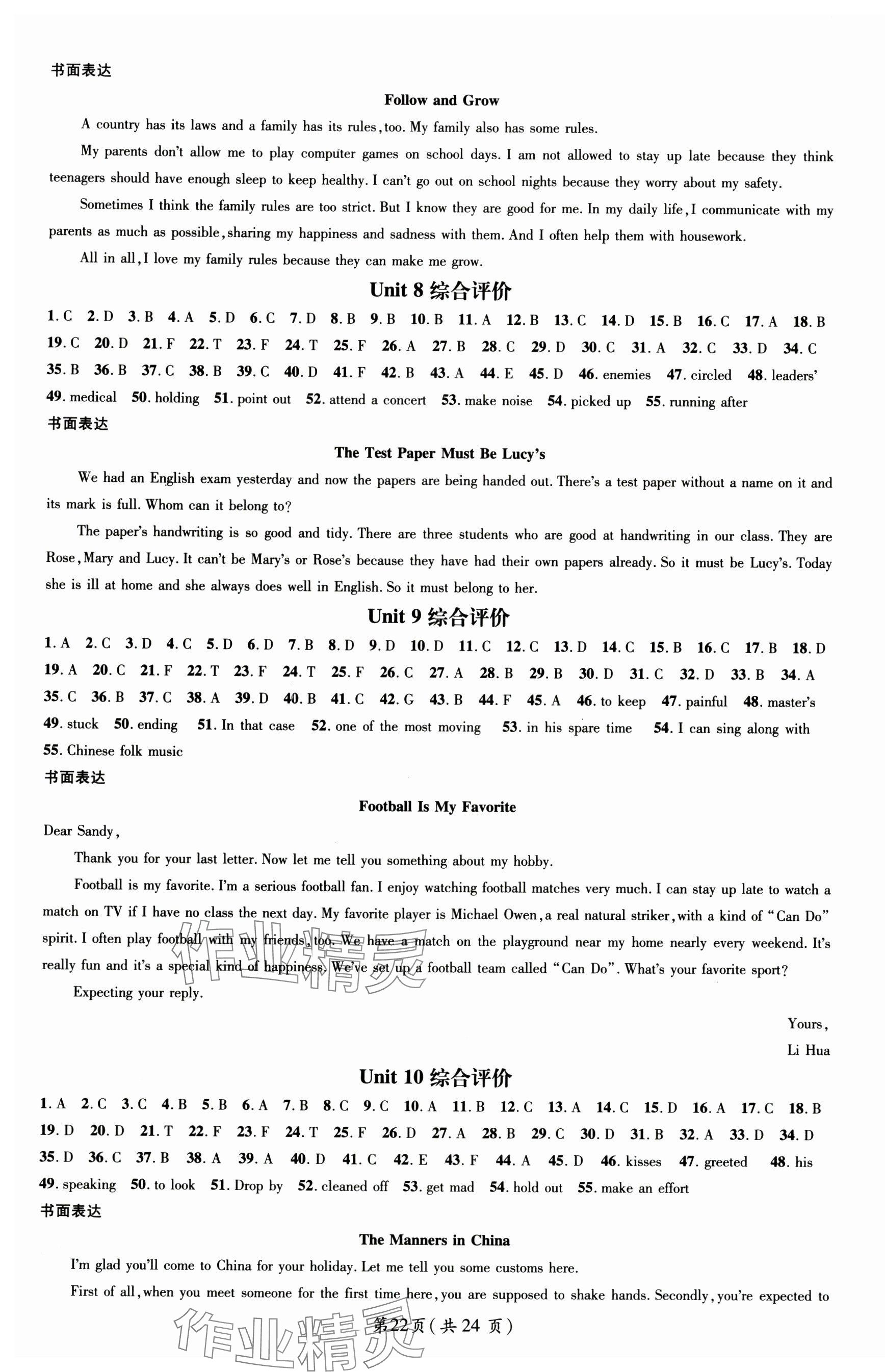 注:目前有些书本章节名称可能整理的还不是很完善,但都是按照顺序排列的,请同学们按照顺序仔细查找。练习册 2024年名师测控九年级英语全一册人教版云南专版 答案主要是用来给同学们做完题方便对答案用的,请勿直接抄袭。