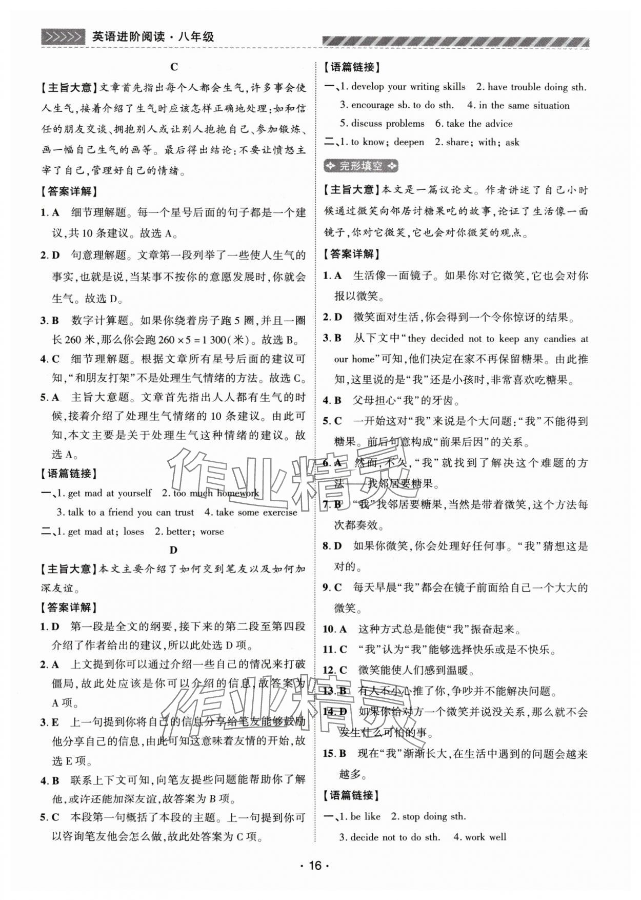 注:目前有些书本章节名称可能整理的还不是很完善,但都是按照顺序排列的,请同学们按照顺序仔细查找。练习册 2024年英语进阶阅读八年级英语上册人教版河南专版 答案主要是用来给同学们做完题方便对答案用的,请勿直接抄袭。