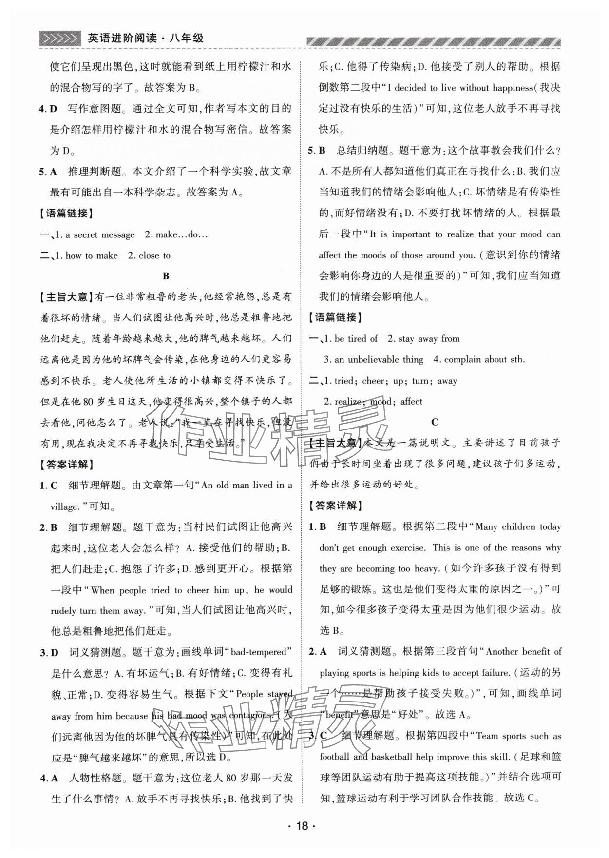注:目前有些书本章节名称可能整理的还不是很完善,但都是按照顺序排列的,请同学们按照顺序仔细查找。练习册 2024年英语进阶阅读八年级英语上册人教版河南专版 答案主要是用来给同学们做完题方便对答案用的,请勿直接抄袭。