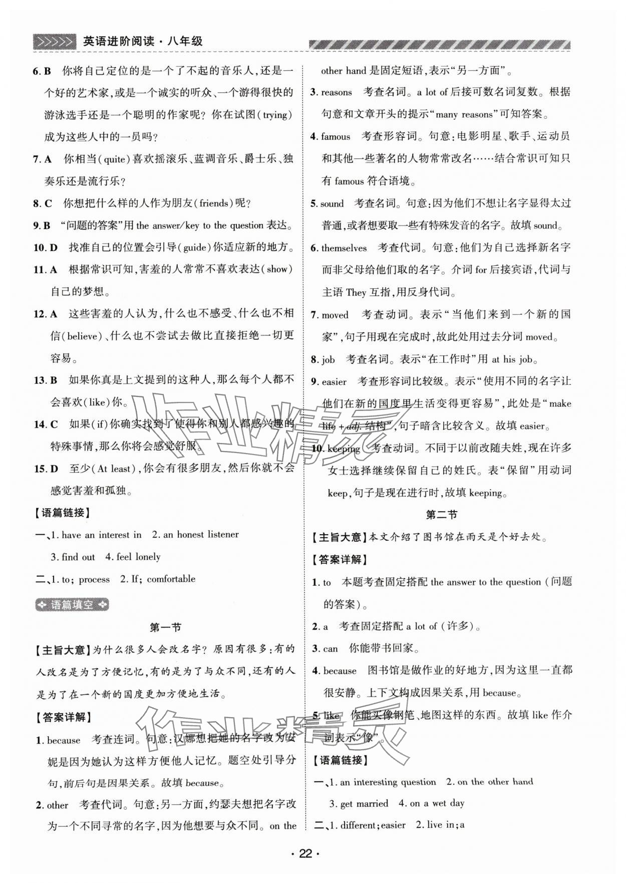 注:目前有些书本章节名称可能整理的还不是很完善,但都是按照顺序排列的,请同学们按照顺序仔细查找。练习册 2024年英语进阶阅读八年级英语上册人教版河南专版 答案主要是用来给同学们做完题方便对答案用的,请勿直接抄袭。