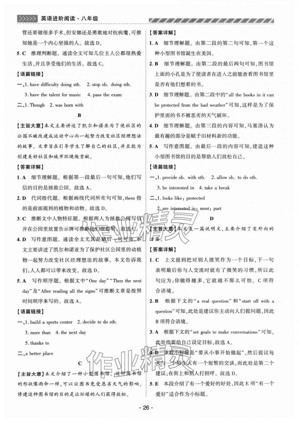 注:目前有些书本章节名称可能整理的还不是很完善,但都是按照顺序排列的,请同学们按照顺序仔细查找。练习册 2024年英语进阶阅读八年级英语上册人教版河南专版 答案主要是用来给同学们做完题方便对答案用的,请勿直接抄袭。