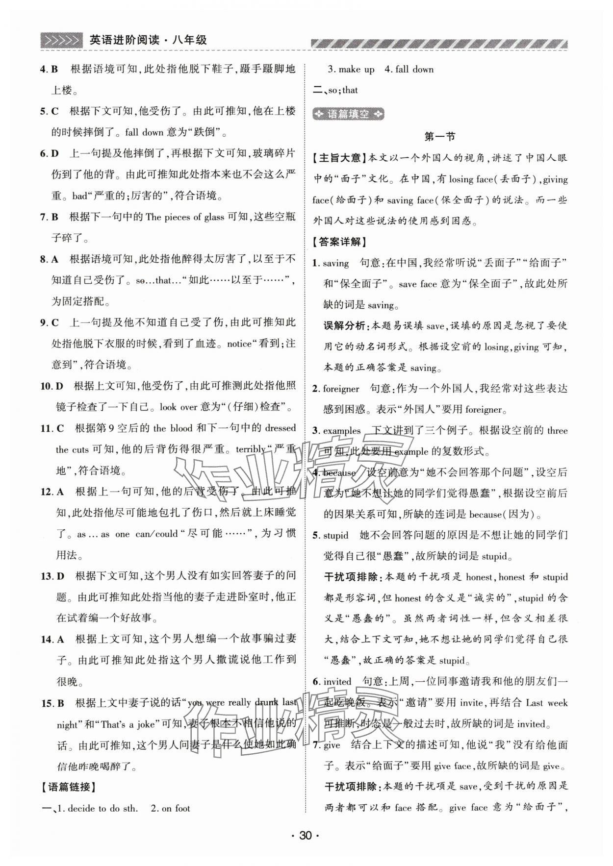注:目前有些书本章节名称可能整理的还不是很完善,但都是按照顺序排列的,请同学们按照顺序仔细查找。练习册 2024年英语进阶阅读八年级英语上册人教版河南专版 答案主要是用来给同学们做完题方便对答案用的,请勿直接抄袭。
