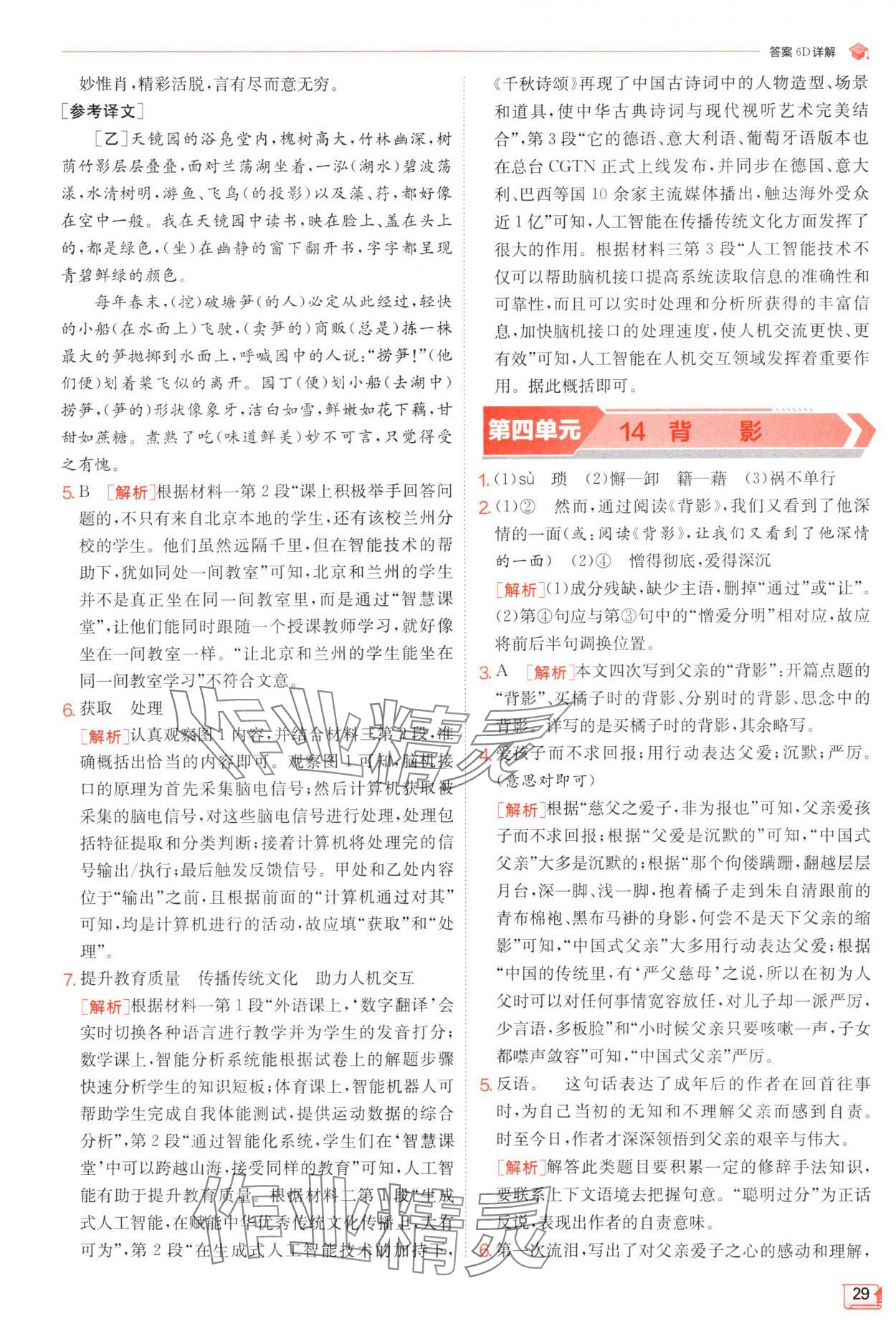 注:目前有些书本章节名称可能整理的还不是很完善,但都是按照顺序排列的,请同学们按照顺序仔细查找。练习册 2024年实验班提优训练八年级语文上册人教版 答案主要是用来给同学们做完题方便对答案用的,请勿直接抄袭。