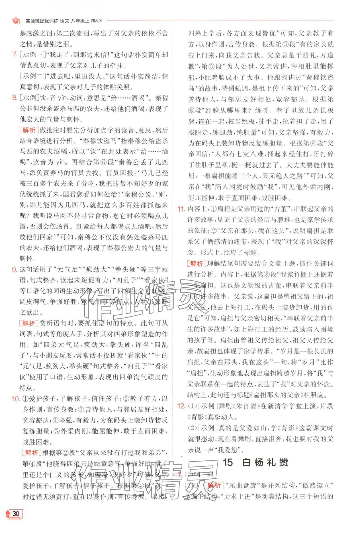 注:目前有些书本章节名称可能整理的还不是很完善,但都是按照顺序排列的,请同学们按照顺序仔细查找。练习册 2024年实验班提优训练八年级语文上册人教版 答案主要是用来给同学们做完题方便对答案用的,请勿直接抄袭。