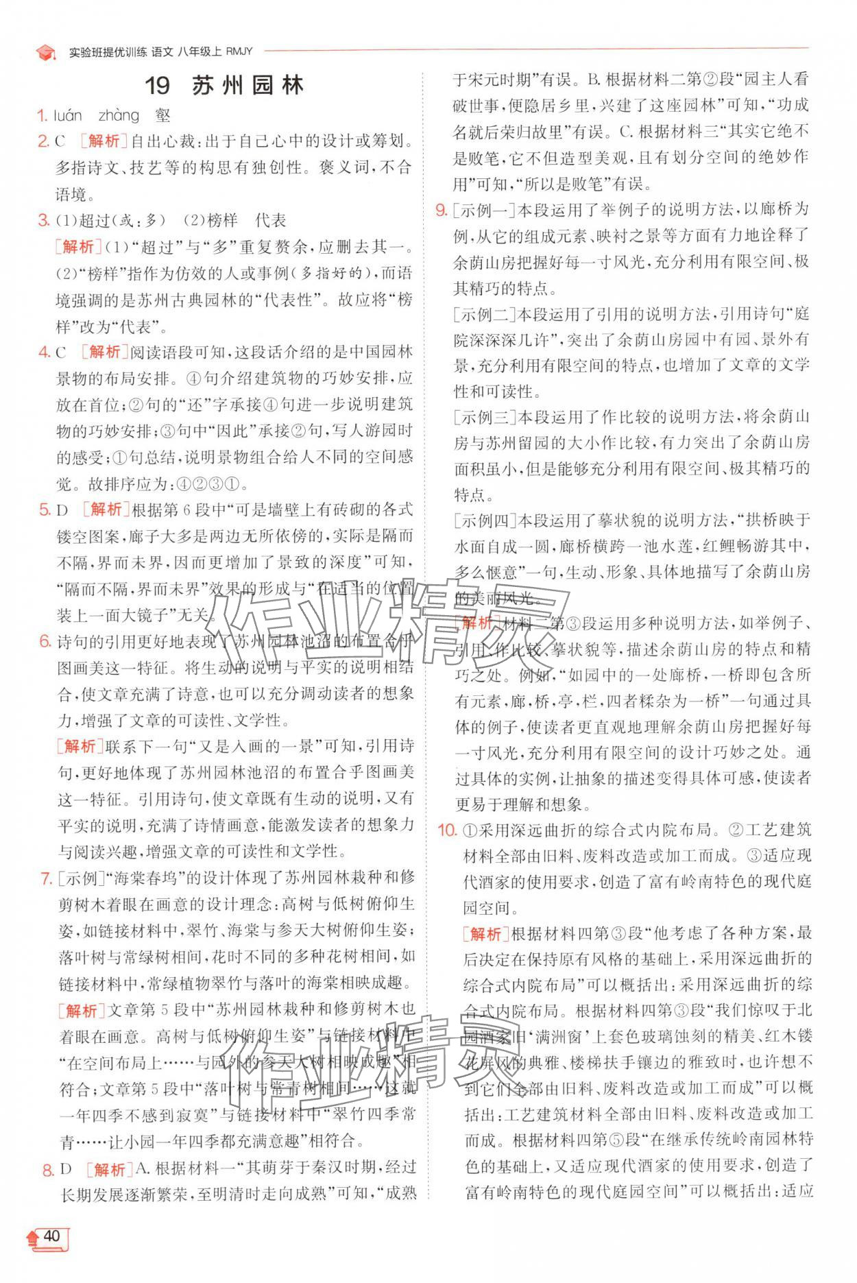 注:目前有些书本章节名称可能整理的还不是很完善,但都是按照顺序排列的,请同学们按照顺序仔细查找。练习册 2024年实验班提优训练八年级语文上册人教版 答案主要是用来给同学们做完题方便对答案用的,请勿直接抄袭。