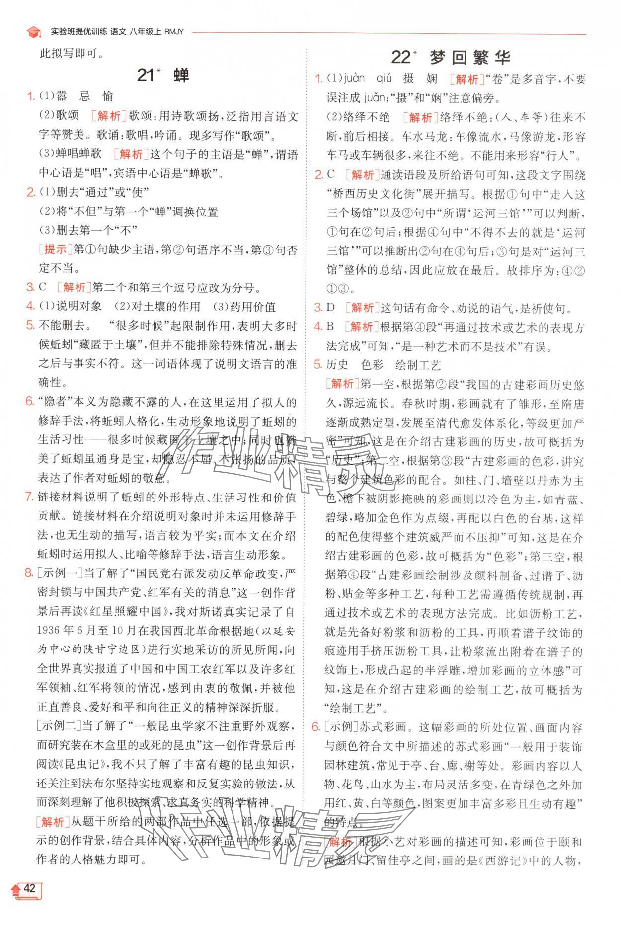 注:目前有些书本章节名称可能整理的还不是很完善,但都是按照顺序排列的,请同学们按照顺序仔细查找。练习册 2024年实验班提优训练八年级语文上册人教版 答案主要是用来给同学们做完题方便对答案用的,请勿直接抄袭。