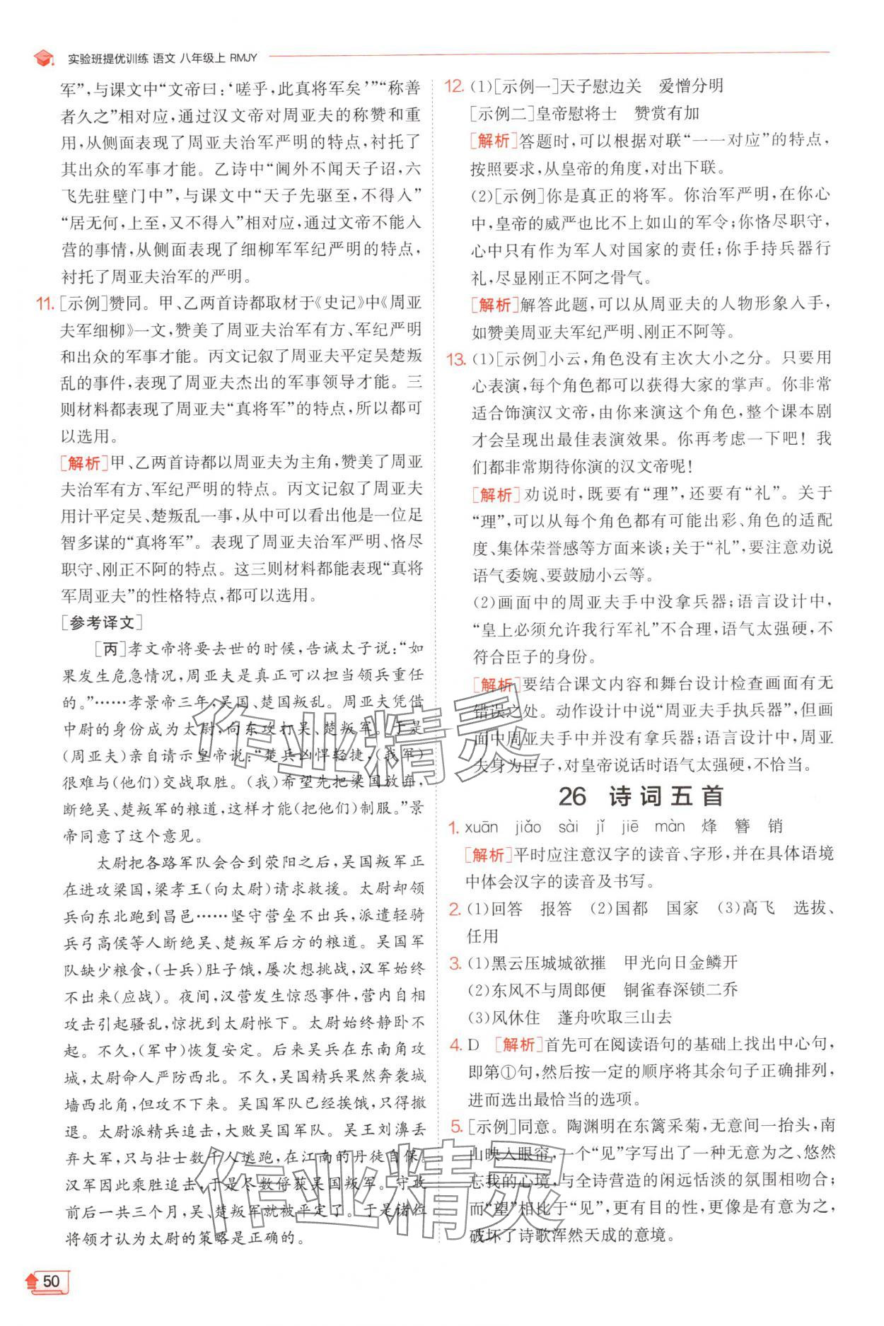 注:目前有些书本章节名称可能整理的还不是很完善,但都是按照顺序排列的,请同学们按照顺序仔细查找。练习册 2024年实验班提优训练八年级语文上册人教版 答案主要是用来给同学们做完题方便对答案用的,请勿直接抄袭。