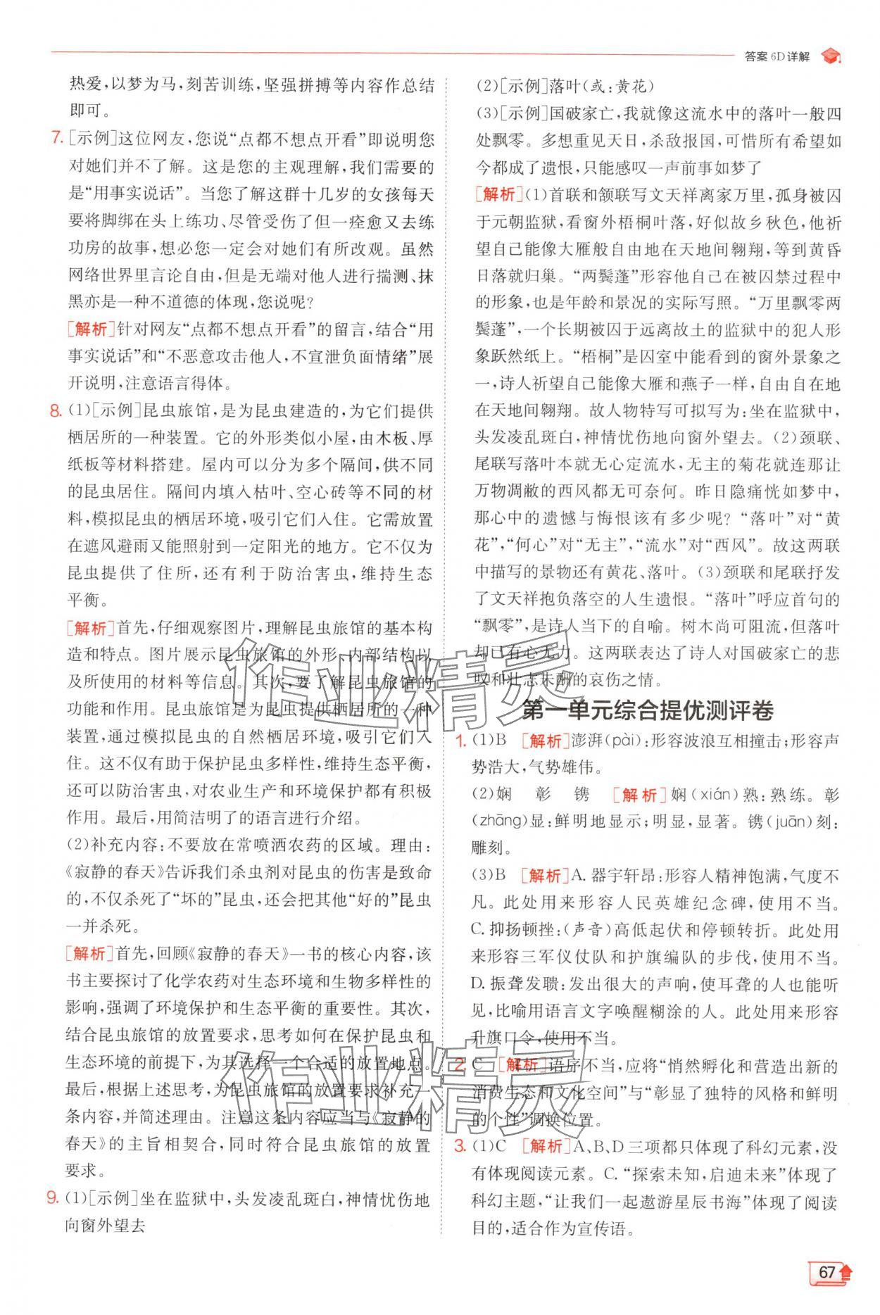 注:目前有些书本章节名称可能整理的还不是很完善,但都是按照顺序排列的,请同学们按照顺序仔细查找。练习册 2024年实验班提优训练八年级语文上册人教版 答案主要是用来给同学们做完题方便对答案用的,请勿直接抄袭。