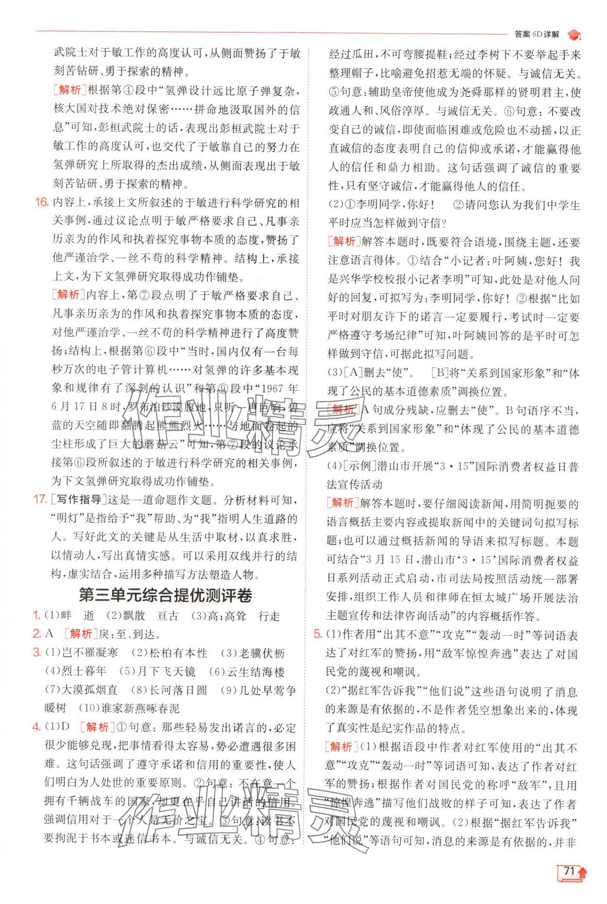 - 参考答案第71页