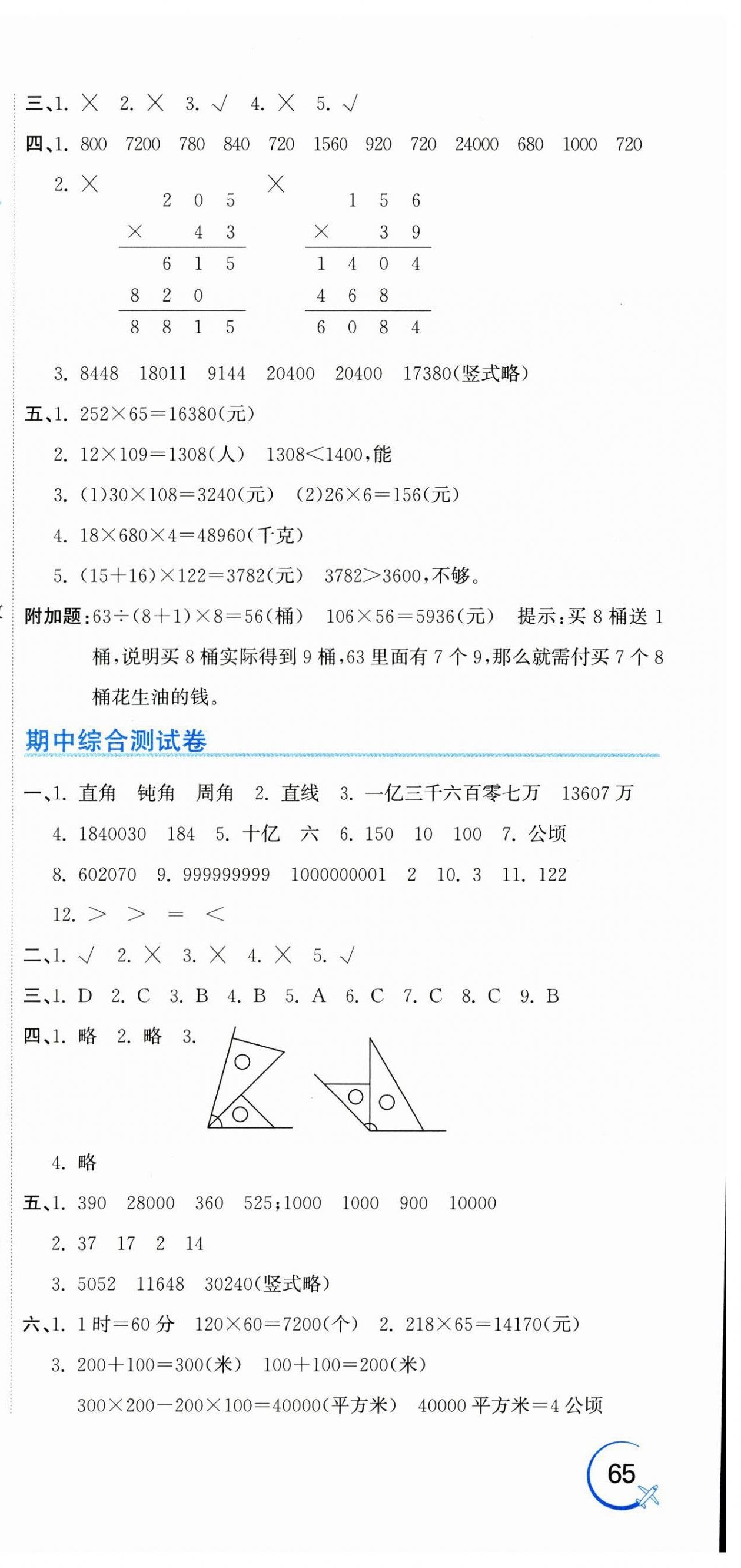 注:目前有些书本章节名称可能整理的还不是很完善,但都是按照顺序排列的,请同学们按照顺序仔细查找。练习册 2024年新目标检测同步单元测试卷四年级数学上册人教版 答案主要是用来给同学们做完题方便对答案用的,请勿直接抄袭。