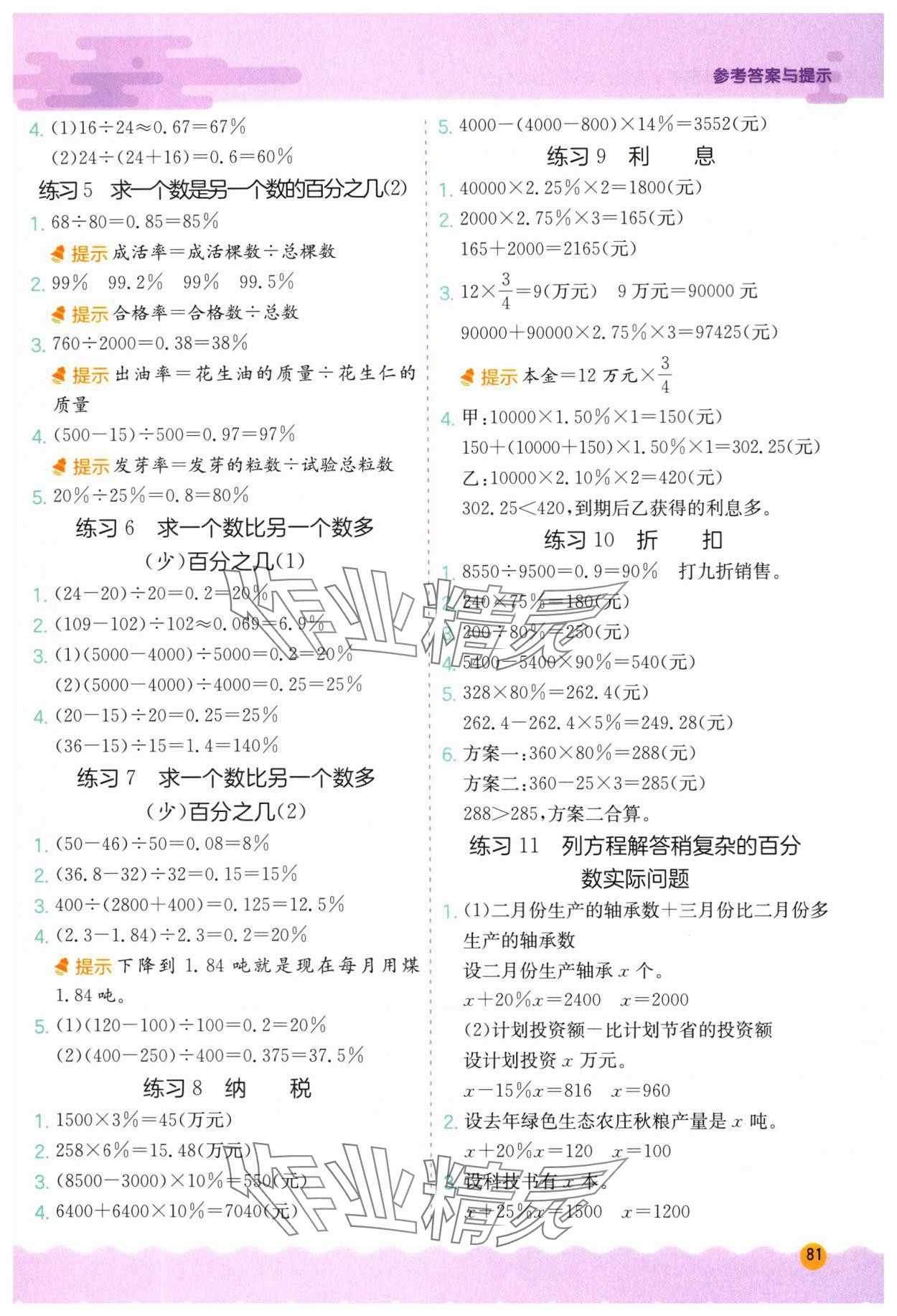 注:目前有些书本章节名称可能整理的还不是很完善,但都是按照顺序排列的,请同学们按照顺序仔细查找。练习册 2024年春雨教育解题高手六年级数学上册江苏教育版 答案主要是用来给同学们做完题方便对答案用的,请勿直接抄袭。