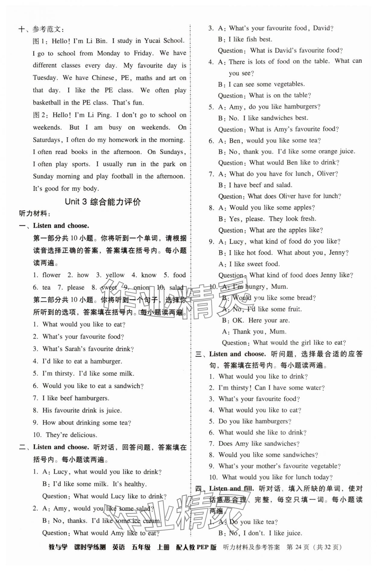 注:目前有些书本章节名称可能整理的还不是很完善,但都是按照顺序排列的,请同学们按照顺序仔细查找。练习册 2024年教与学课时学练测五年级英语上册人教版 答案主要是用来给同学们做完题方便对答案用的,请勿直接抄袭。