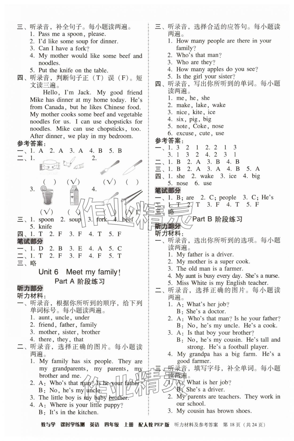 注:目前有些书本章节名称可能整理的还不是很完善,但都是按照顺序排列的,请同学们按照顺序仔细查找。练习册 2024年教与学课时学练测四年级英语上册人教版 答案主要是用来给同学们做完题方便对答案用的,请勿直接抄袭。