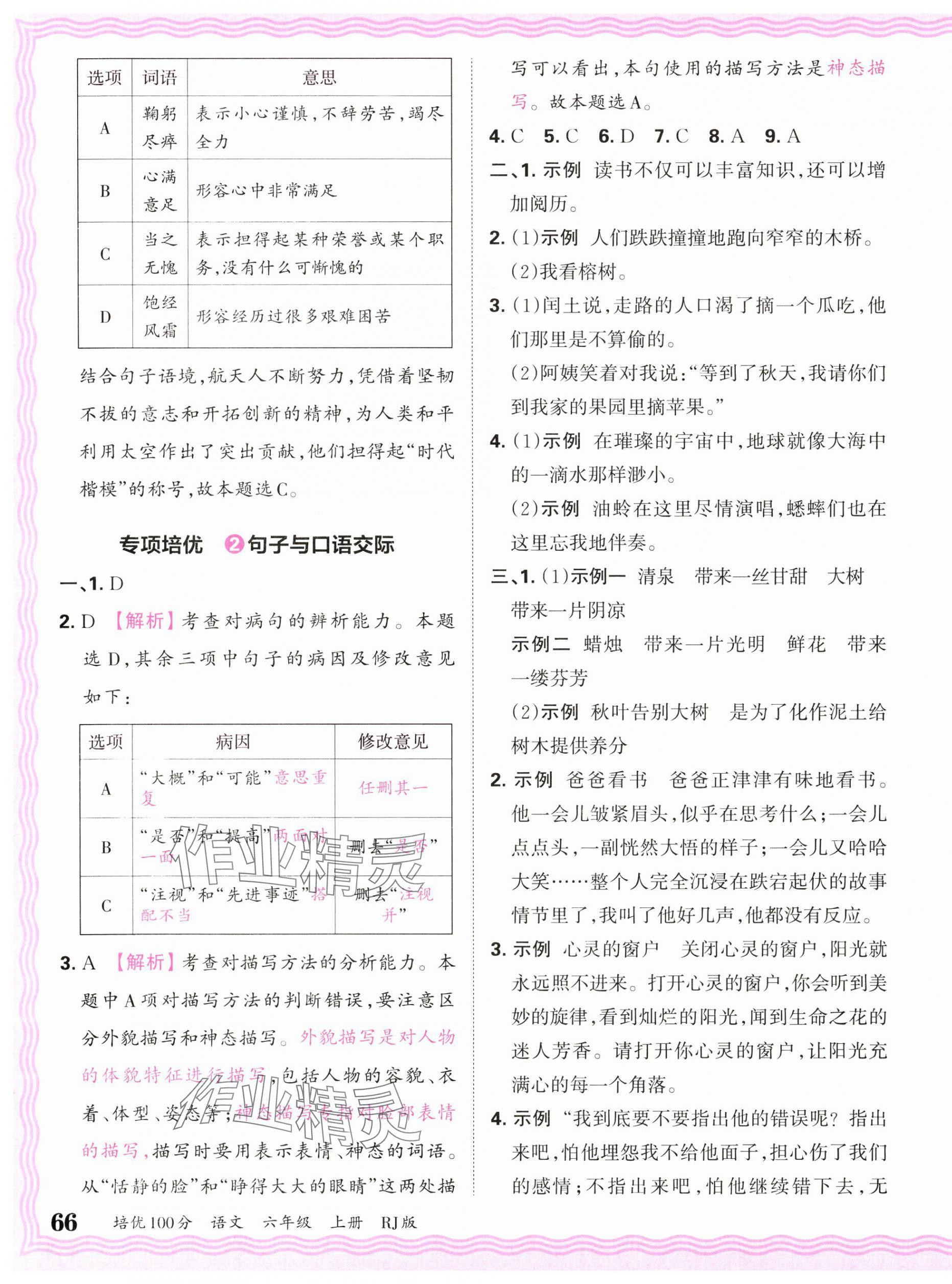 注:目前有些书本章节名称可能整理的还不是很完善,但都是按照顺序排列的,请同学们按照顺序仔细查找。练习册 2024年王朝霞培优100分六年级语文上册人教版 答案主要是用来给同学们做完题方便对答案用的,请勿直接抄袭。