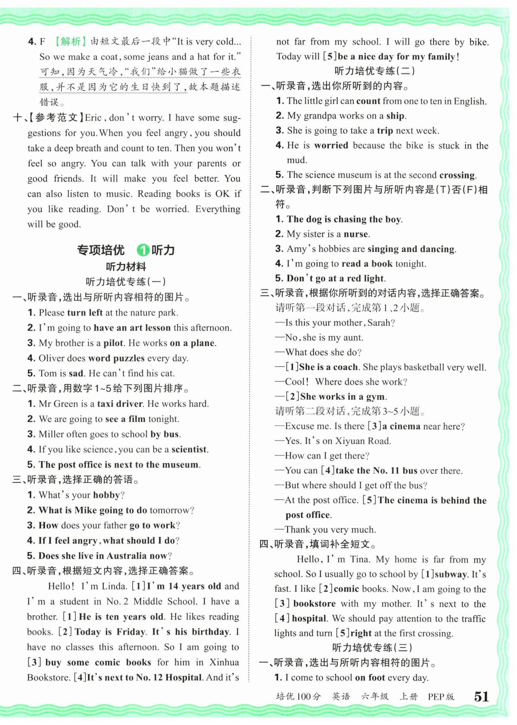 注:目前有些书本章节名称可能整理的还不是很完善,但都是按照顺序排列的,请同学们按照顺序仔细查找。练习册 2024年王朝霞培优100分六年级英语上册人教版 答案主要是用来给同学们做完题方便对答案用的,请勿直接抄袭。