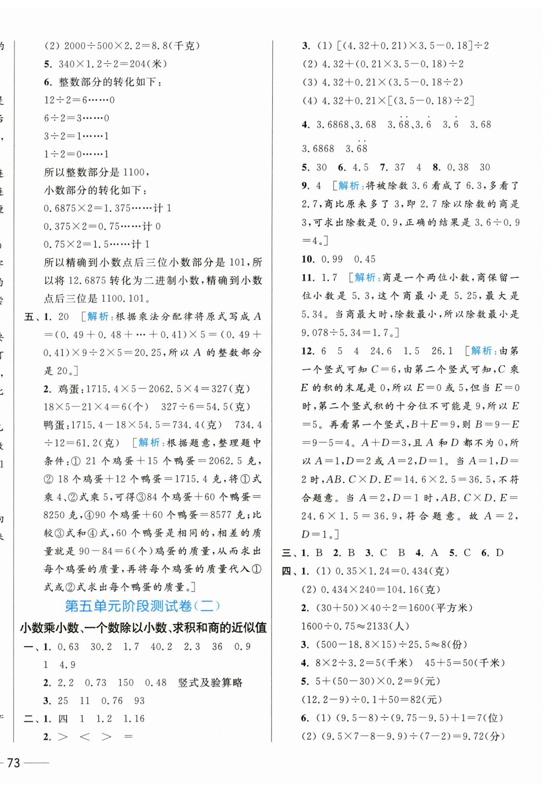 2024年亮点给力全优卷霸五年级数学上册苏教版