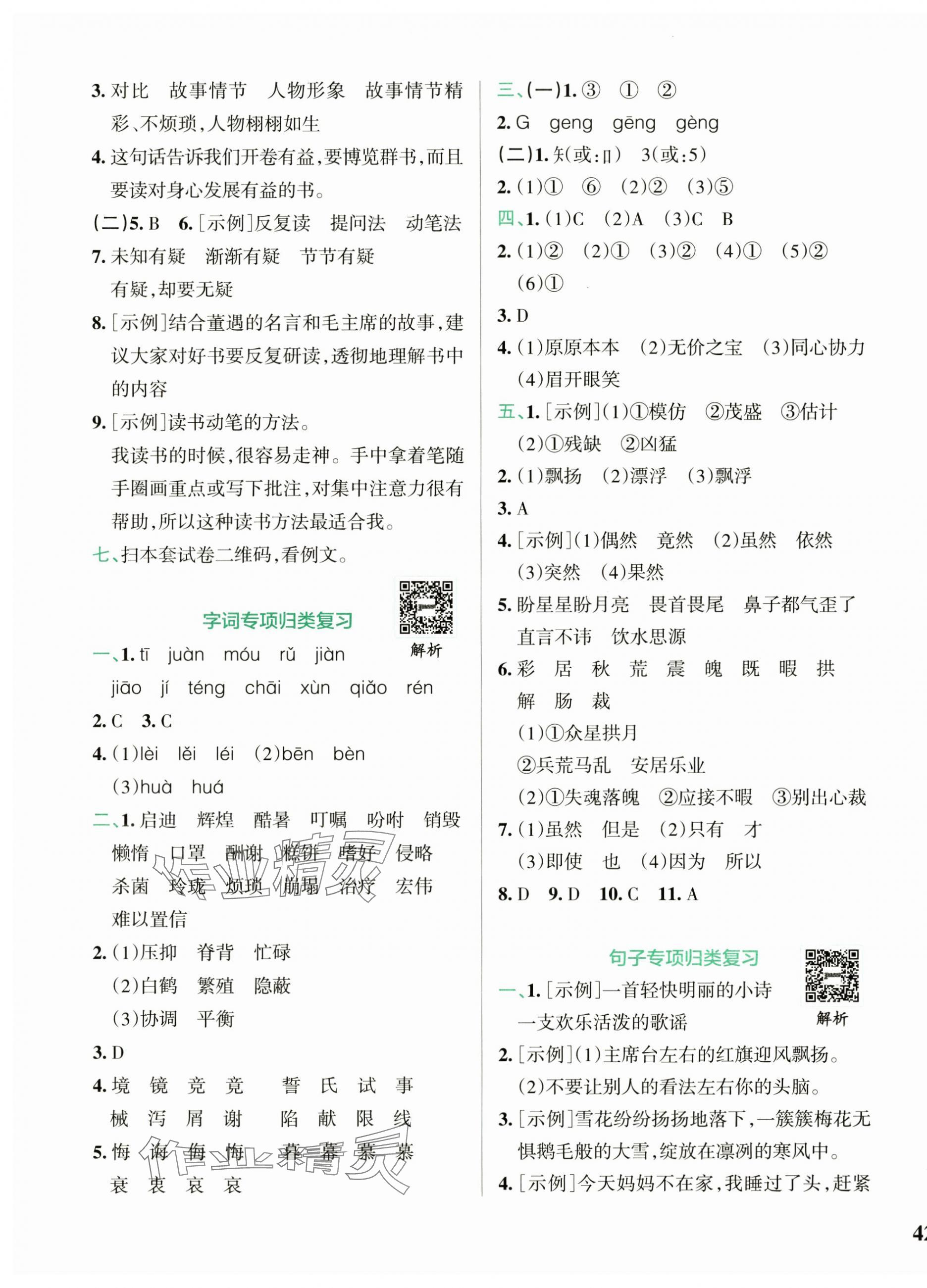 注:目前有些书本章节名称可能整理的还不是很完善,但都是按照顺序排列的,请同学们按照顺序仔细查找。练习册 2024年小学学霸冲A卷五年级语文上册人教版 答案主要是用来给同学们做完题方便对答案用的,请勿直接抄袭。
