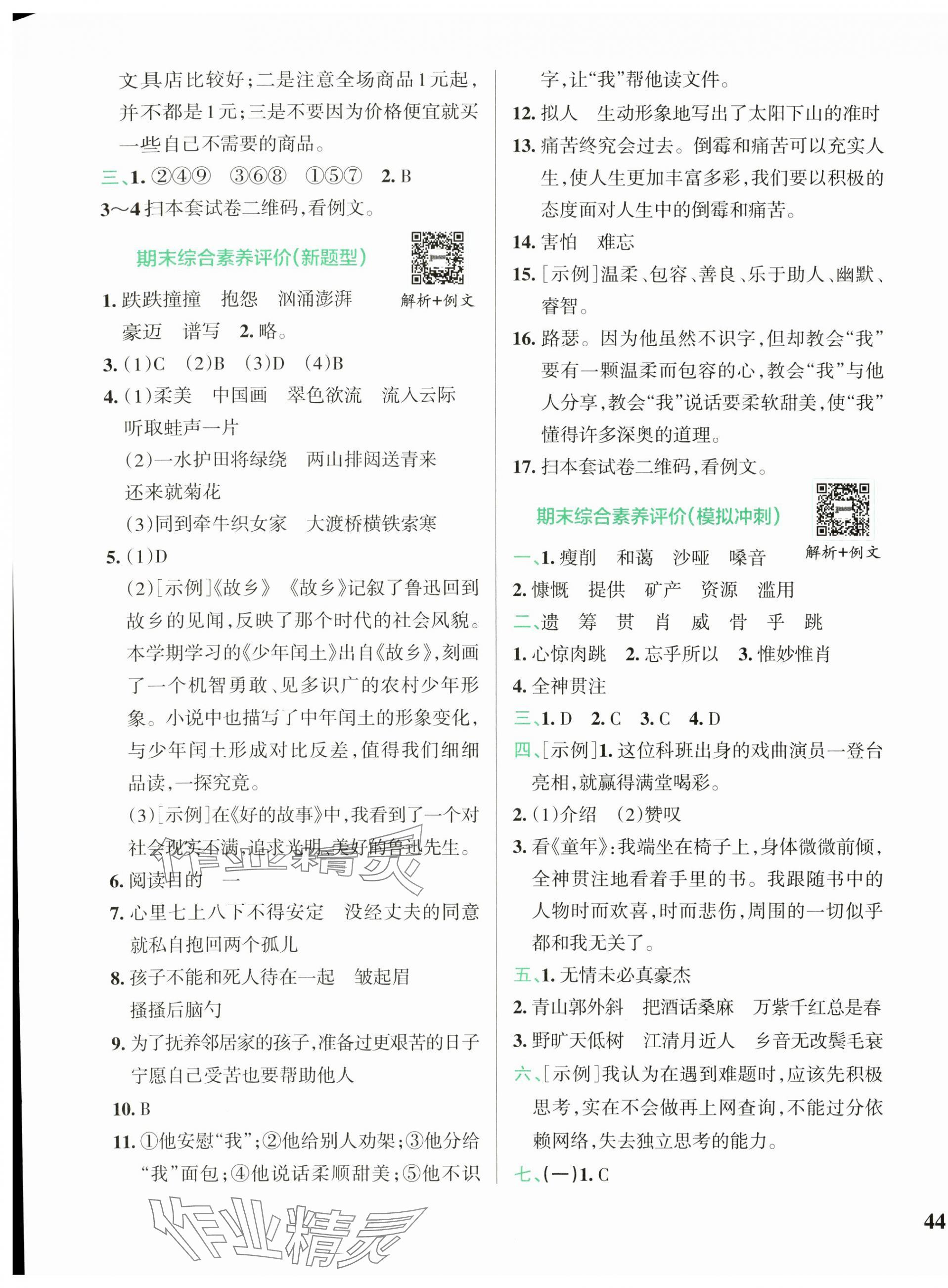 注:目前有些书本章节名称可能整理的还不是很完善,但都是按照顺序排列的,请同学们按照顺序仔细查找。练习册 2024年小学学霸冲A卷六年级语文上册人教版 答案主要是用来给同学们做完题方便对答案用的,请勿直接抄袭。