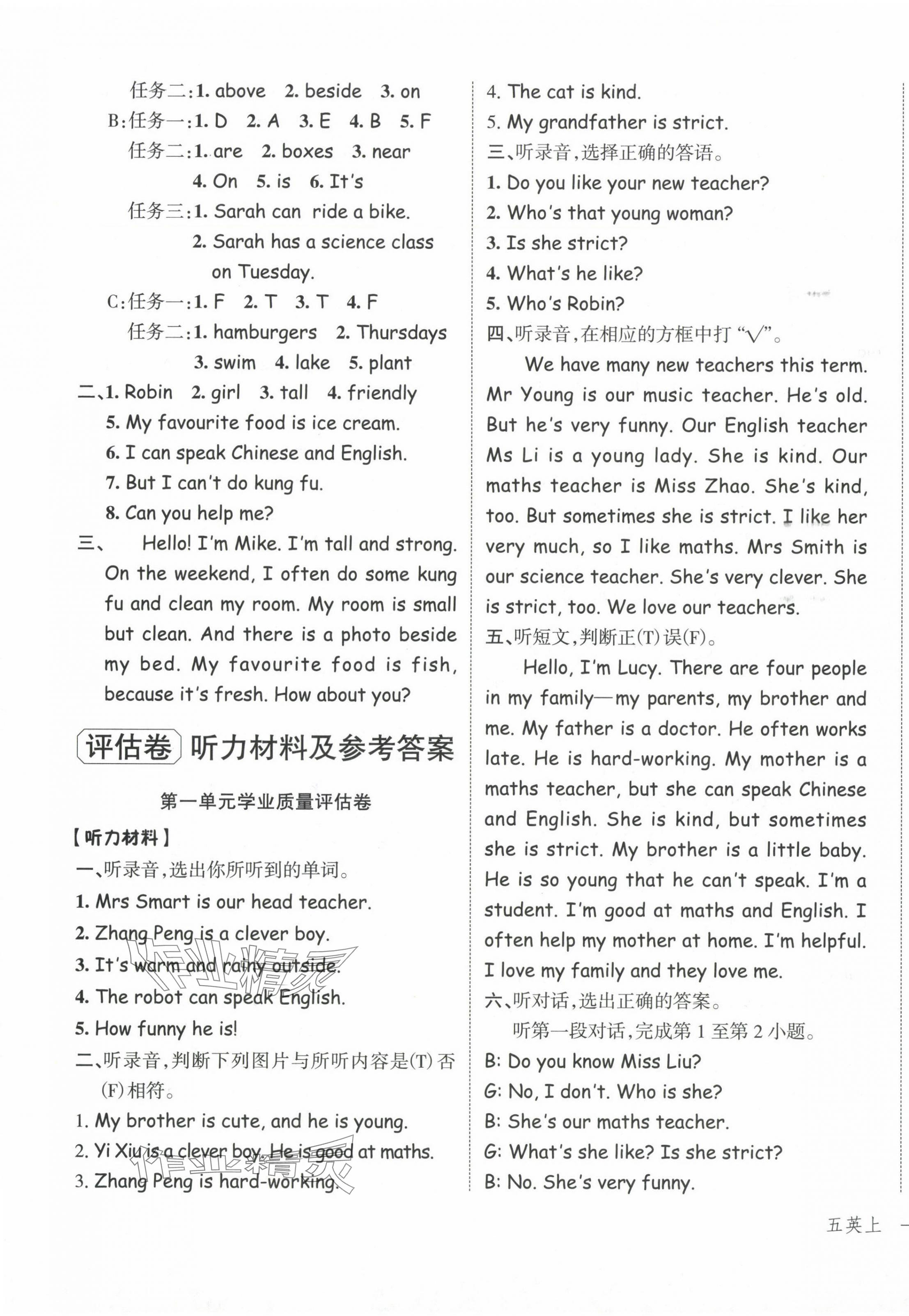 注:目前有些书本章节名称可能整理的还不是很完善,但都是按照顺序排列的,请同学们按照顺序仔细查找。练习册 2024年名师面对面先学后练五年级英语上册人教版 答案主要是用来给同学们做完题方便对答案用的,请勿直接抄袭。