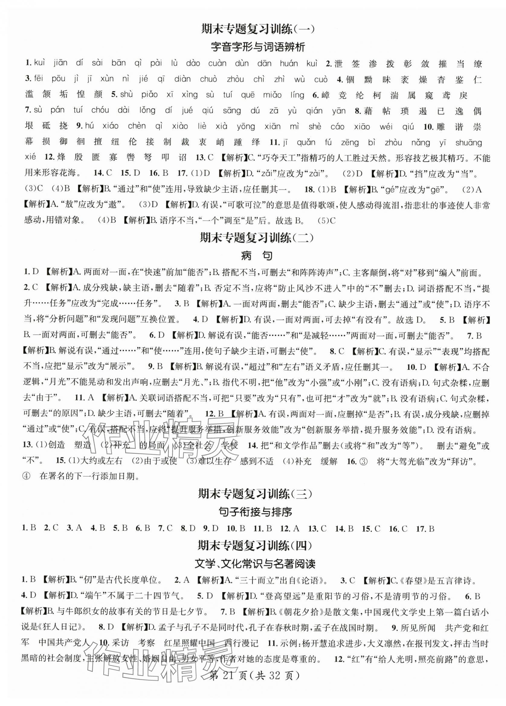 注:目前有些书本章节名称可能整理的还不是很完善,但都是按照顺序排列的,请同学们按照顺序仔细查找。练习册 2024年名师测控八年级语文上册人教版云南专版 答案主要是用来给同学们做完题方便对答案用的,请勿直接抄袭。