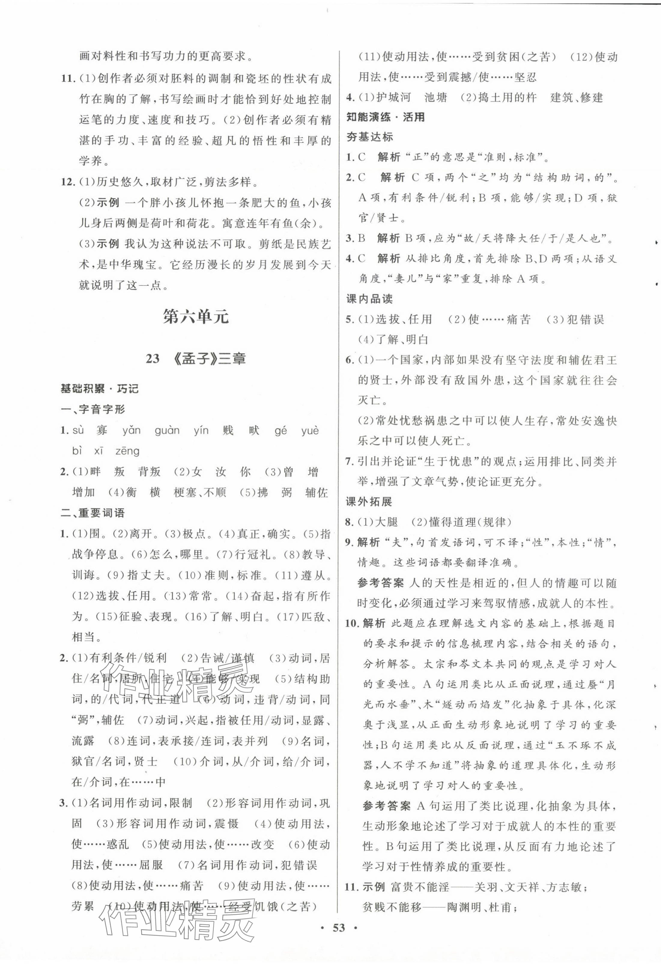 2024年同步练习册八年级语文上册人教版54制山东人民出版社