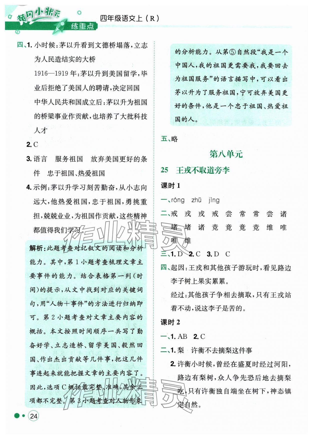 注:目前有些书本章节名称可能整理的还不是很完善,但都是按照顺序排列的,请同学们按照顺序仔细查找。练习册 2024年黄冈小状元练重点四年级语文上册人教版 答案主要是用来给同学们做完题方便对答案用的,请勿直接抄袭。